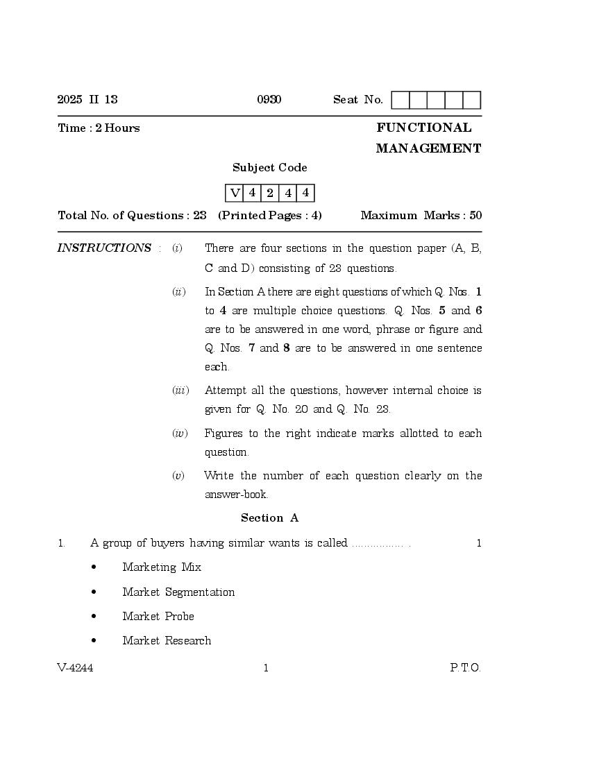More Goa Board Class 12 Question Paper for Functional Management PDF Download – Visit Here