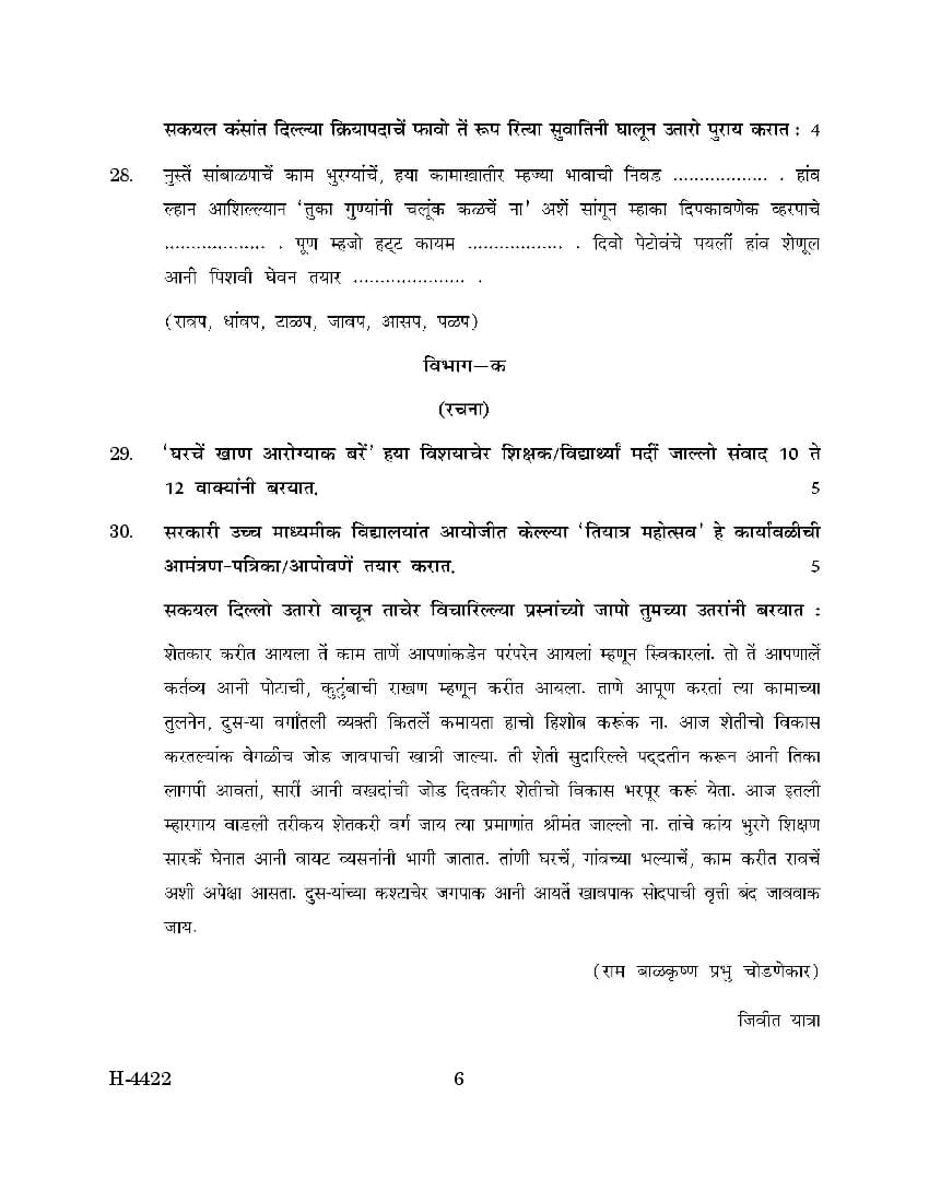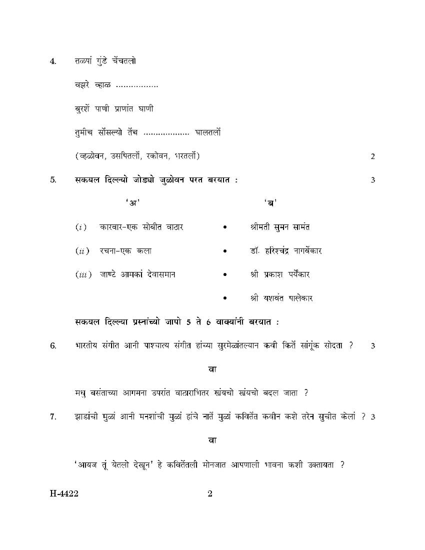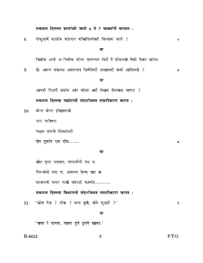 The previous year question paper of Goa board for class 12 (HSSC) Konkani is as follows.