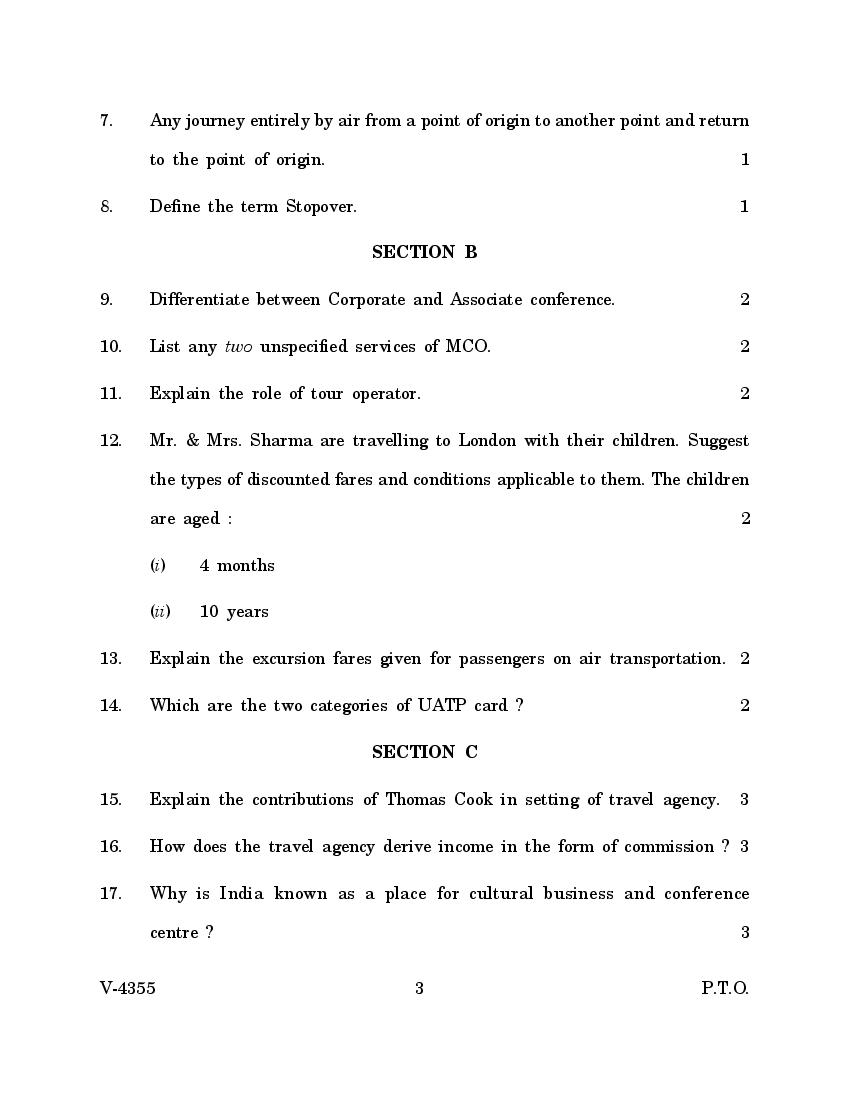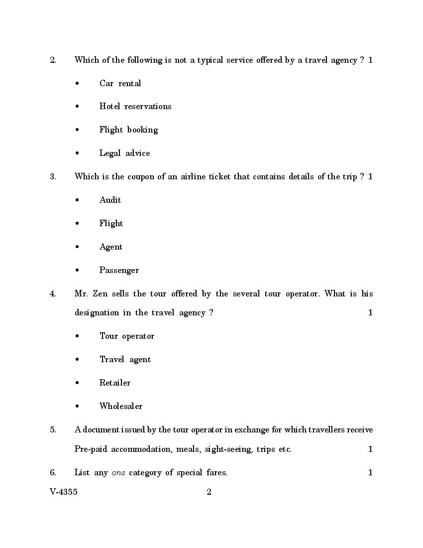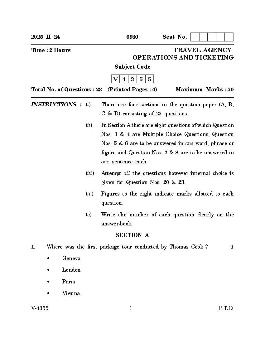 Goa Board Class 12 Question Paper for Travel Agency Operations & Ticketing