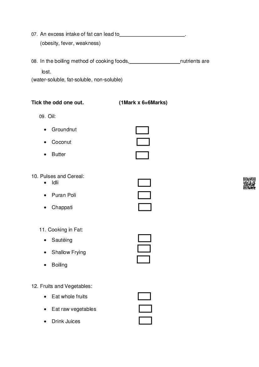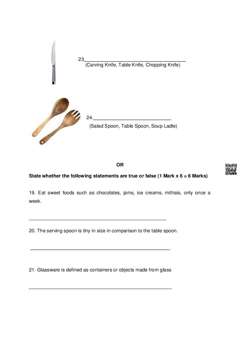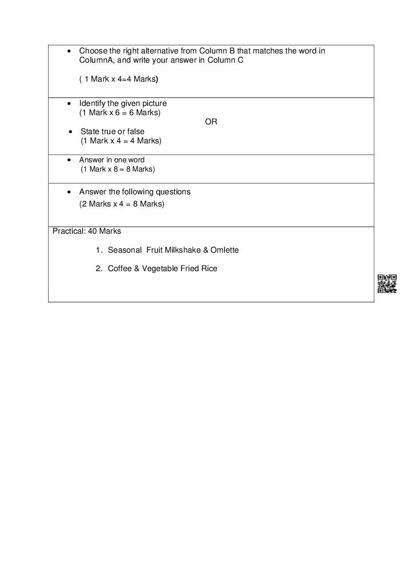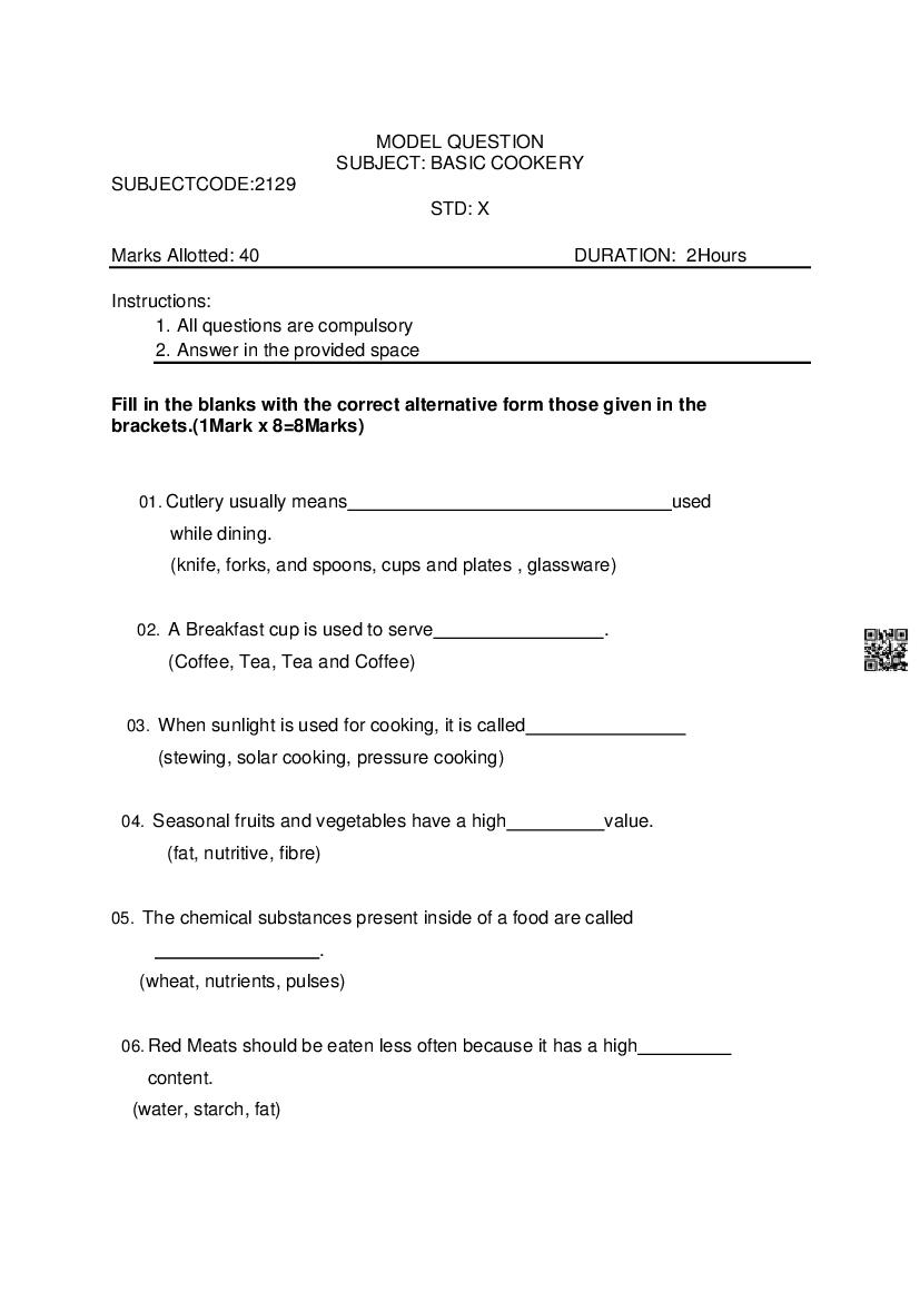 | Study Material Here | Goa Board Sample Question Paper of Class 10 Cookery |