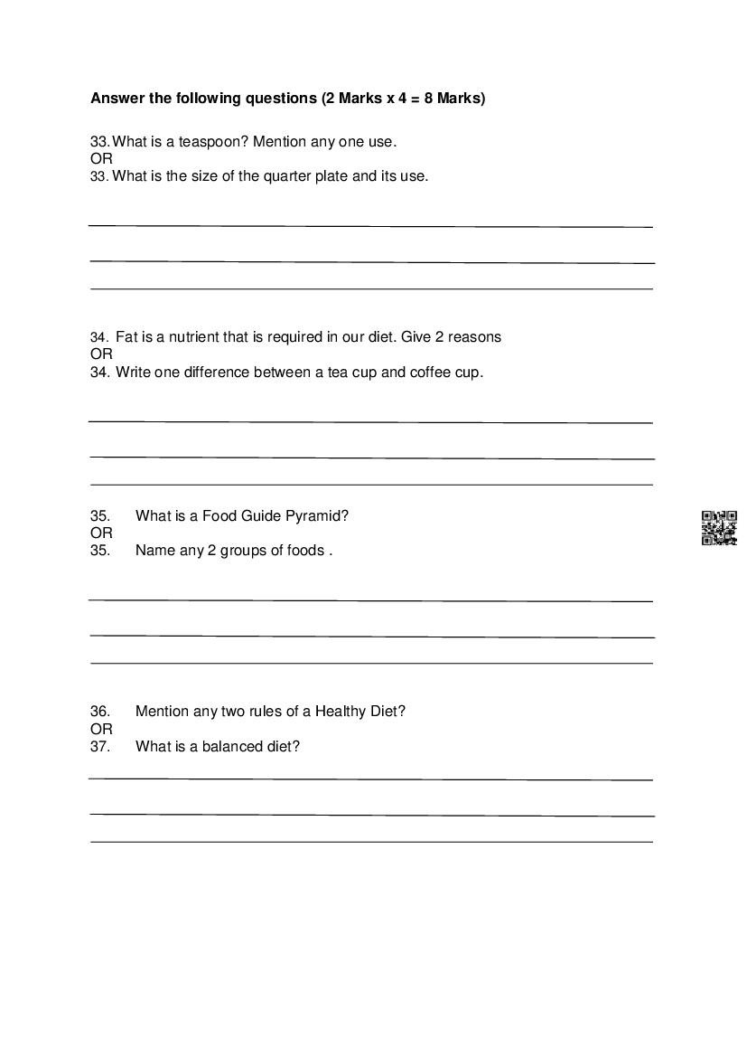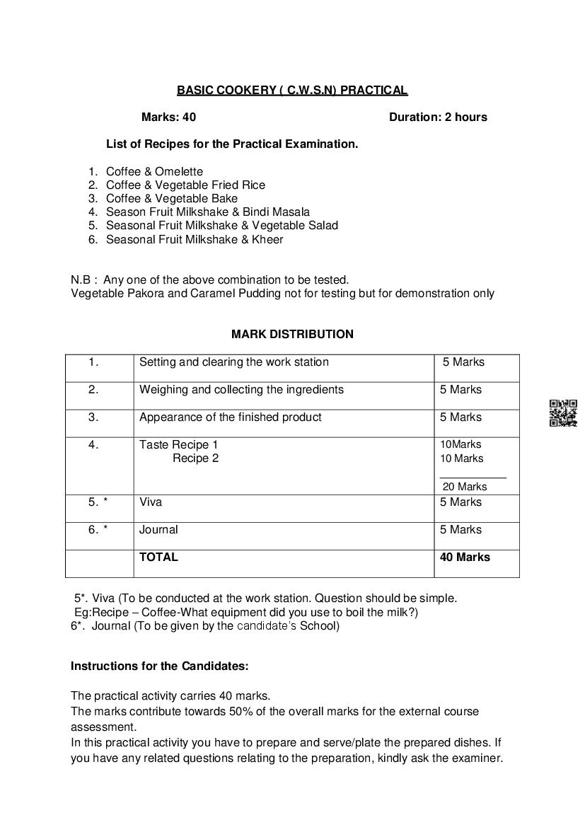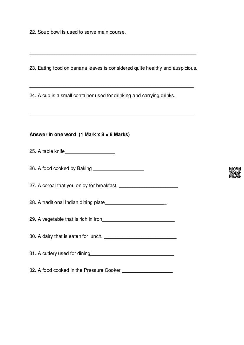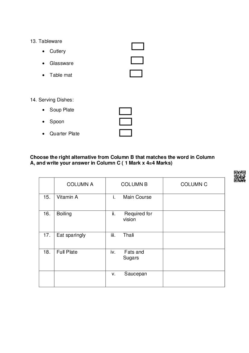 | Study Material Here | Goa Board Sample Question Paper of Class 10 Cookery |