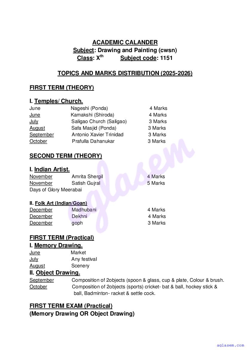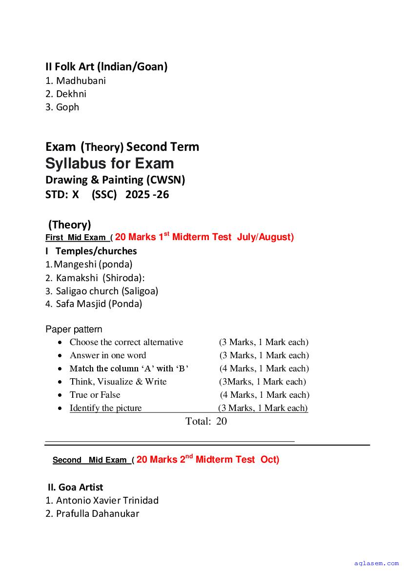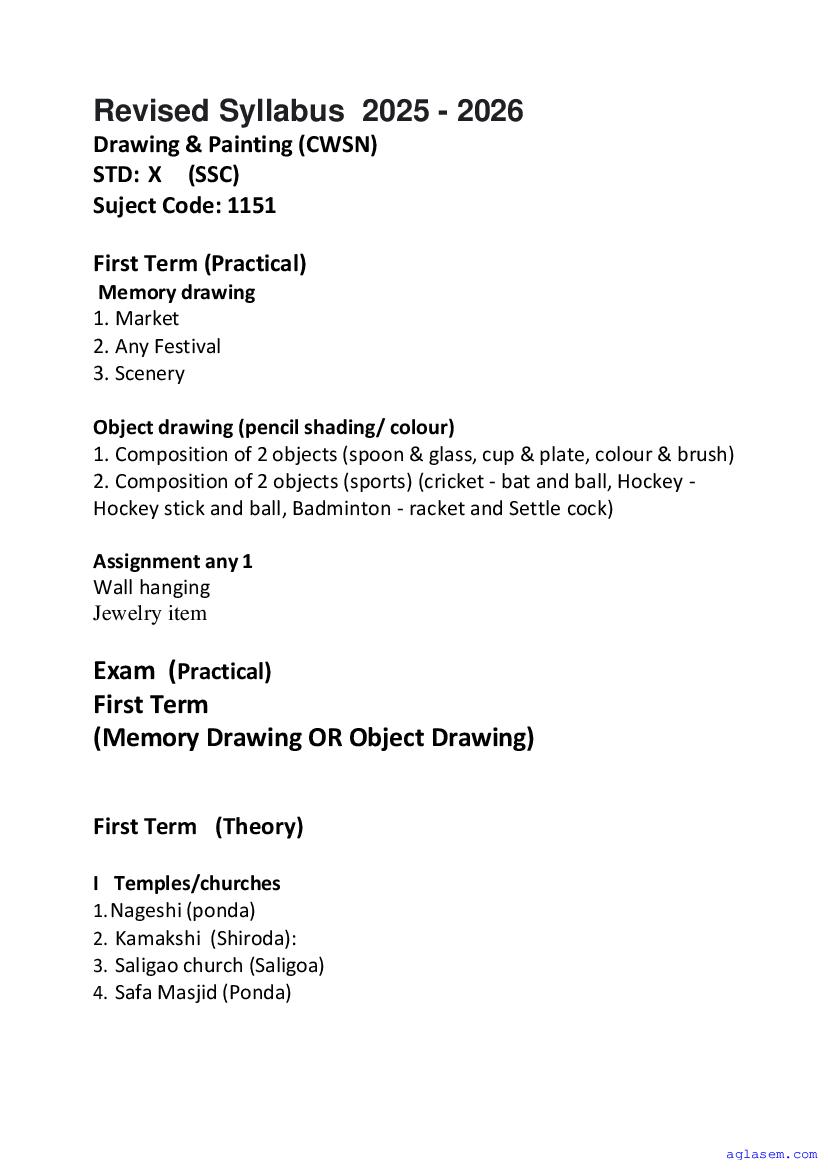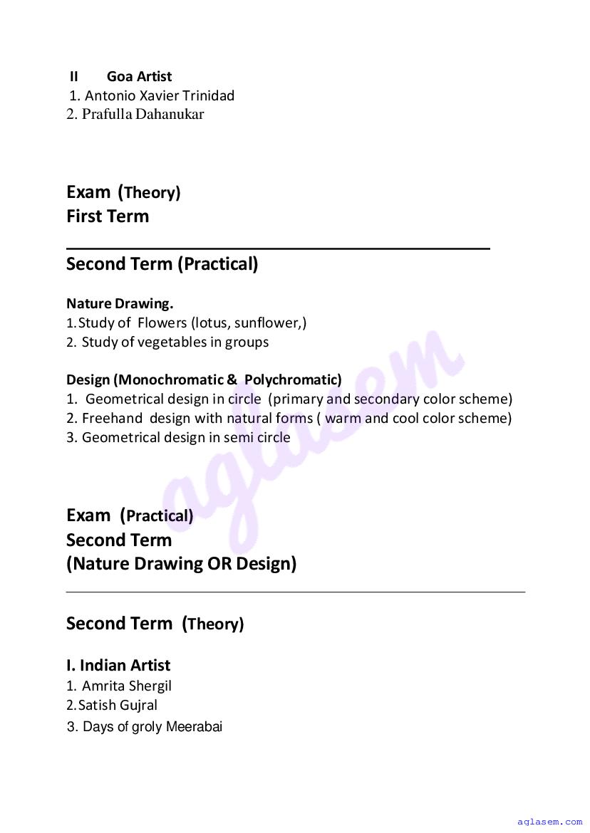 • Goa Board Class 10th Drawing & Painting Syllabus – You should refer the Goa SSC Syllabus for Drawing & Painting as prescribed by the Goa Board of Secondary and Higher Secondary Education.