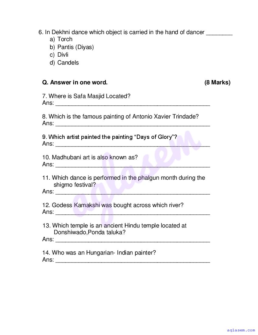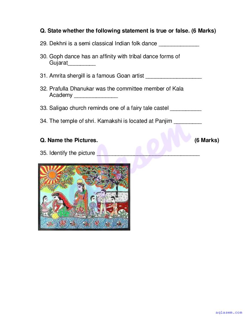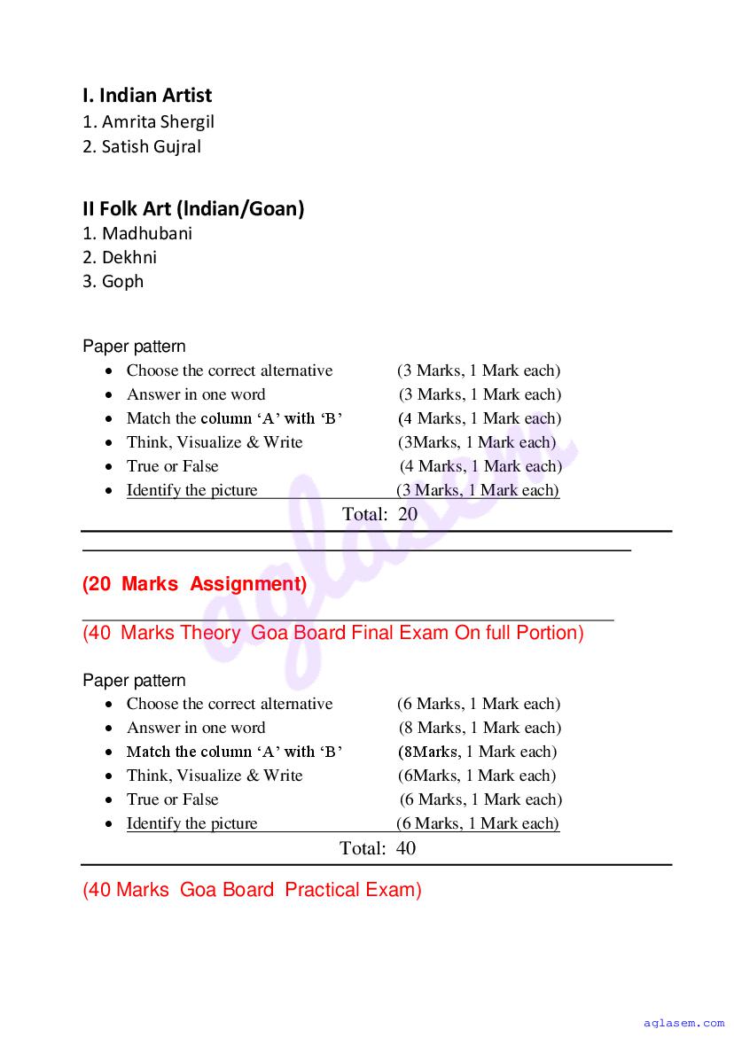 Study Material HereGoa Board Sample Question Paper of Class 10 Drawing & Painting