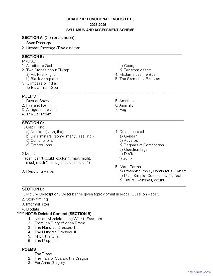 - Goa Board Class 10th Functional English Syllabus – You should refer the Goa SSC Syllabus for Functional English as prescribed by the Goa Board of Secondary and Higher Secondary Education.