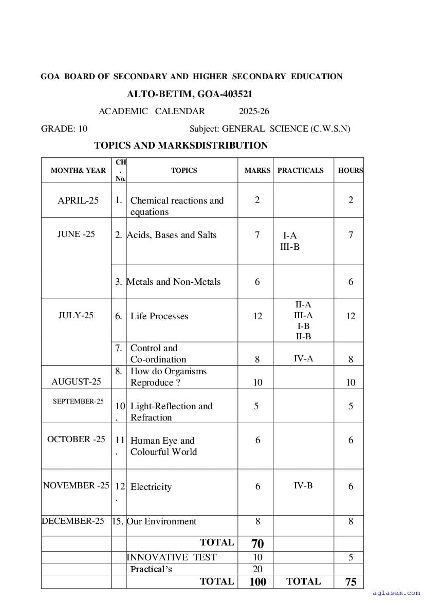 - Goa Board Class 10th General Science Syllabus – You should refer the Goa SSC Syllabus for General Science as prescribed by the Goa Board of Secondary and Higher Secondary Education.