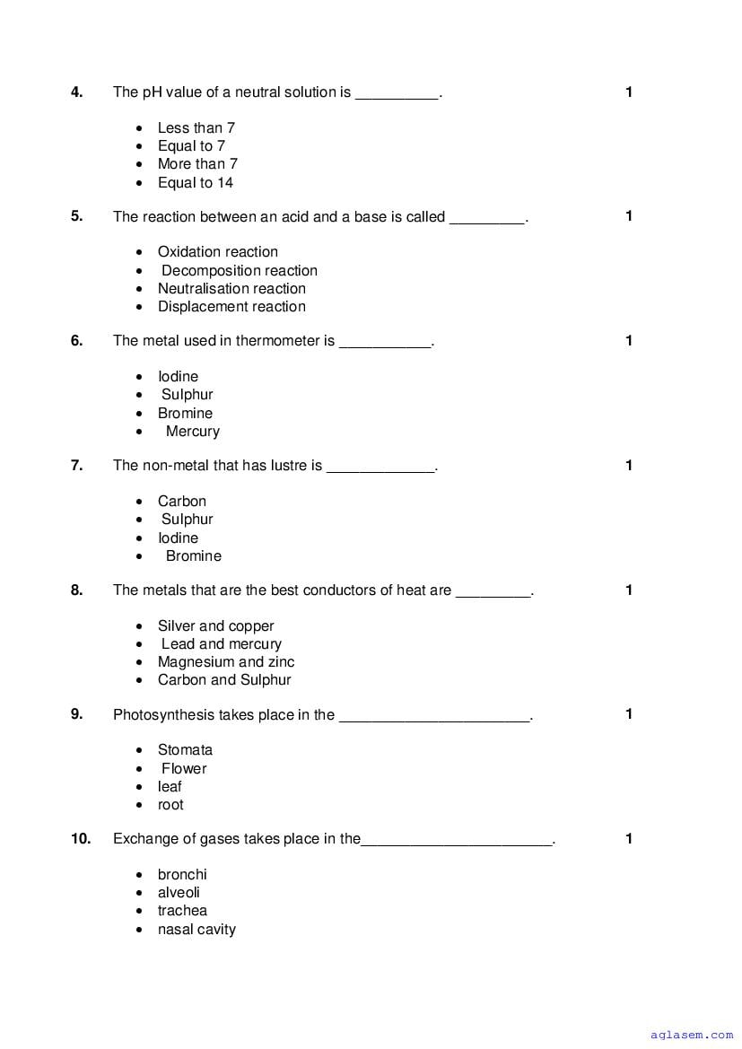 | Study Material Here | Goa Board Sample Question Paper of Class 10 General Science |