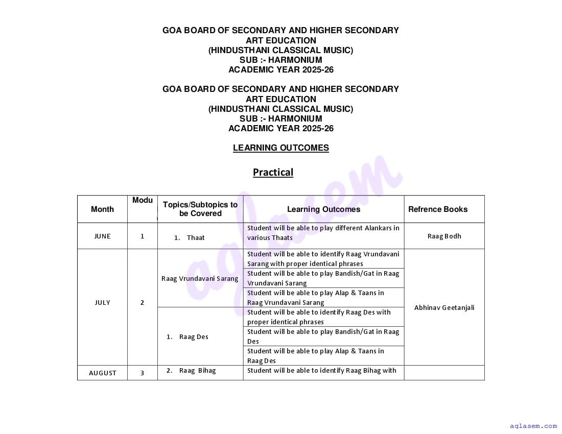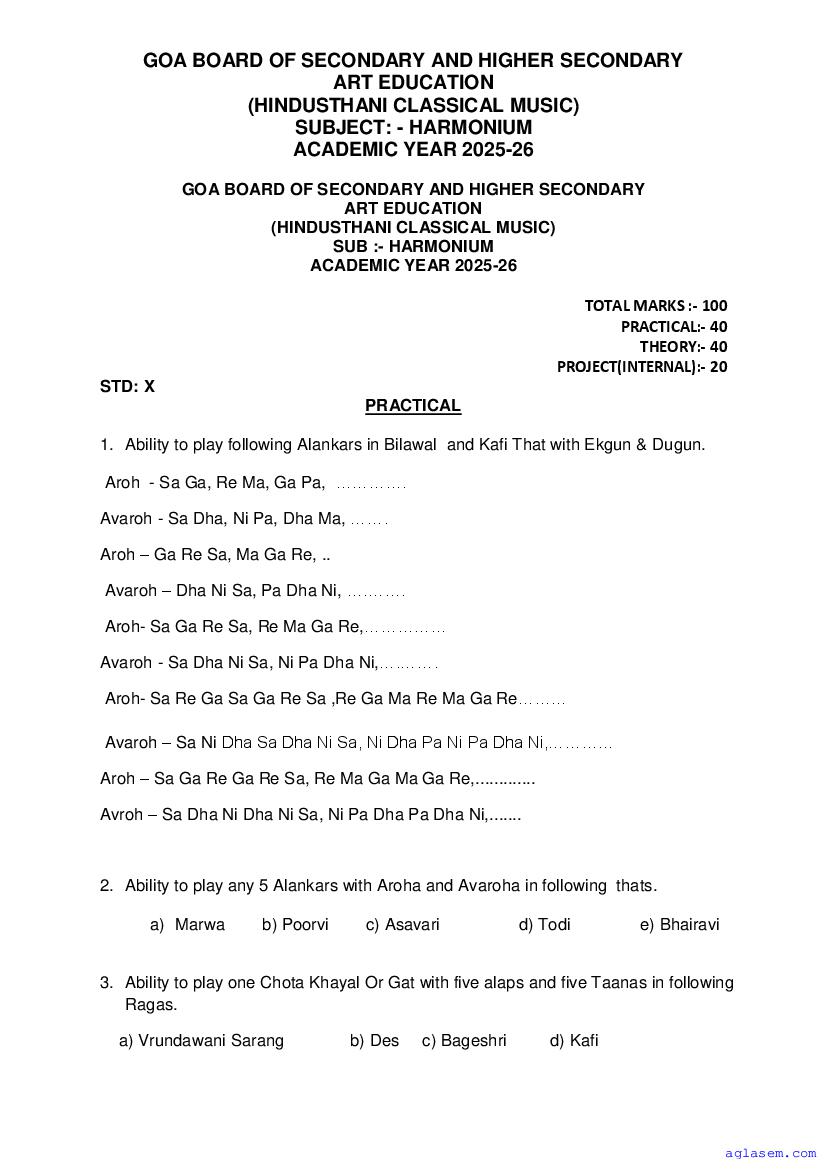 - Goa Board Class 10th Harmonium Syllabus – You should refer the Goa SSC Syllabus for Harmonium as prescribed by the Goa Board of Secondary and Higher Secondary Education.