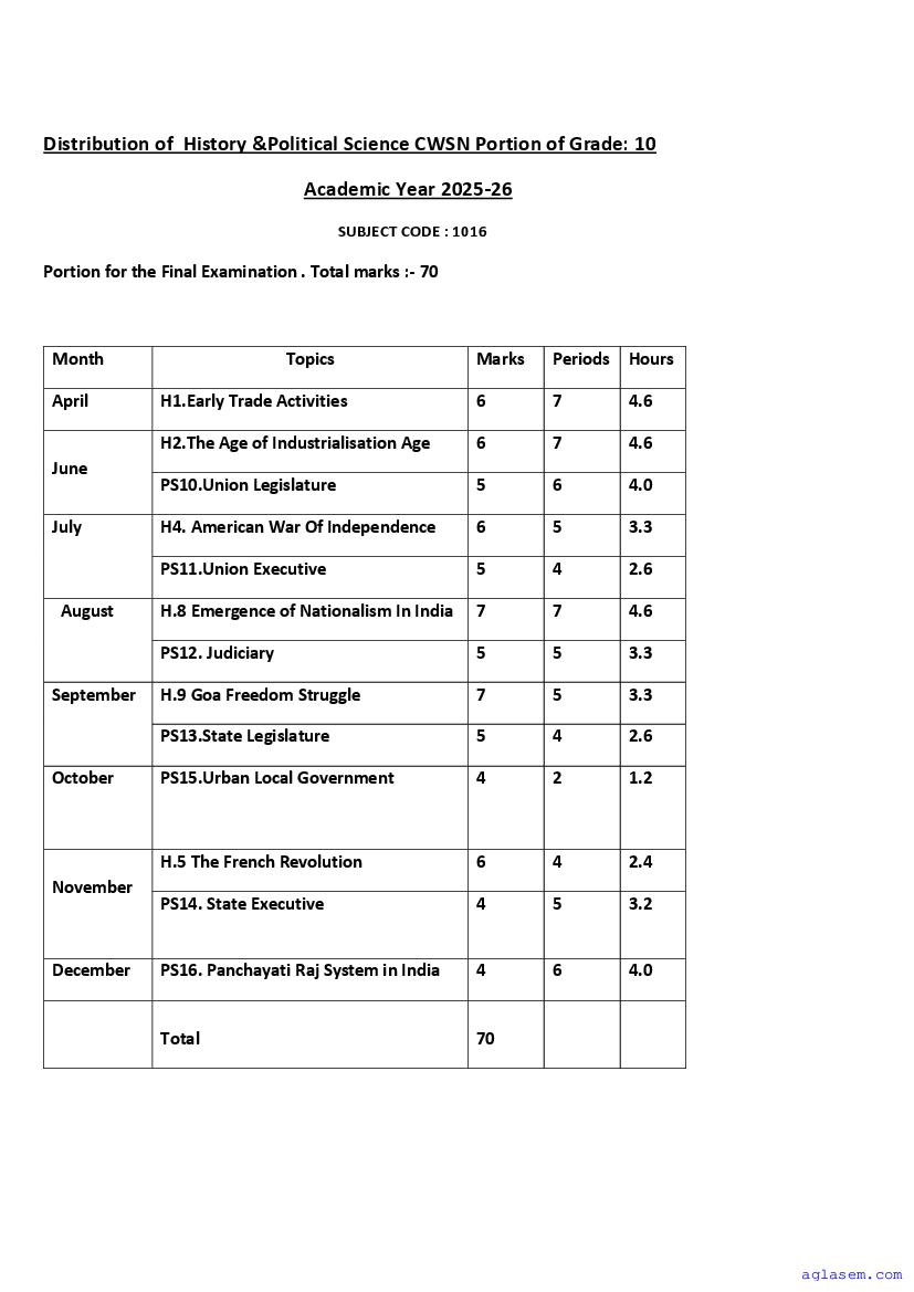 - Goa Board Class 10th History & Political Science Syllabus – You should refer the Goa SSC Syllabus for History & Political Science as prescribed by the Goa Board of Secondary and Higher Secondary Education.