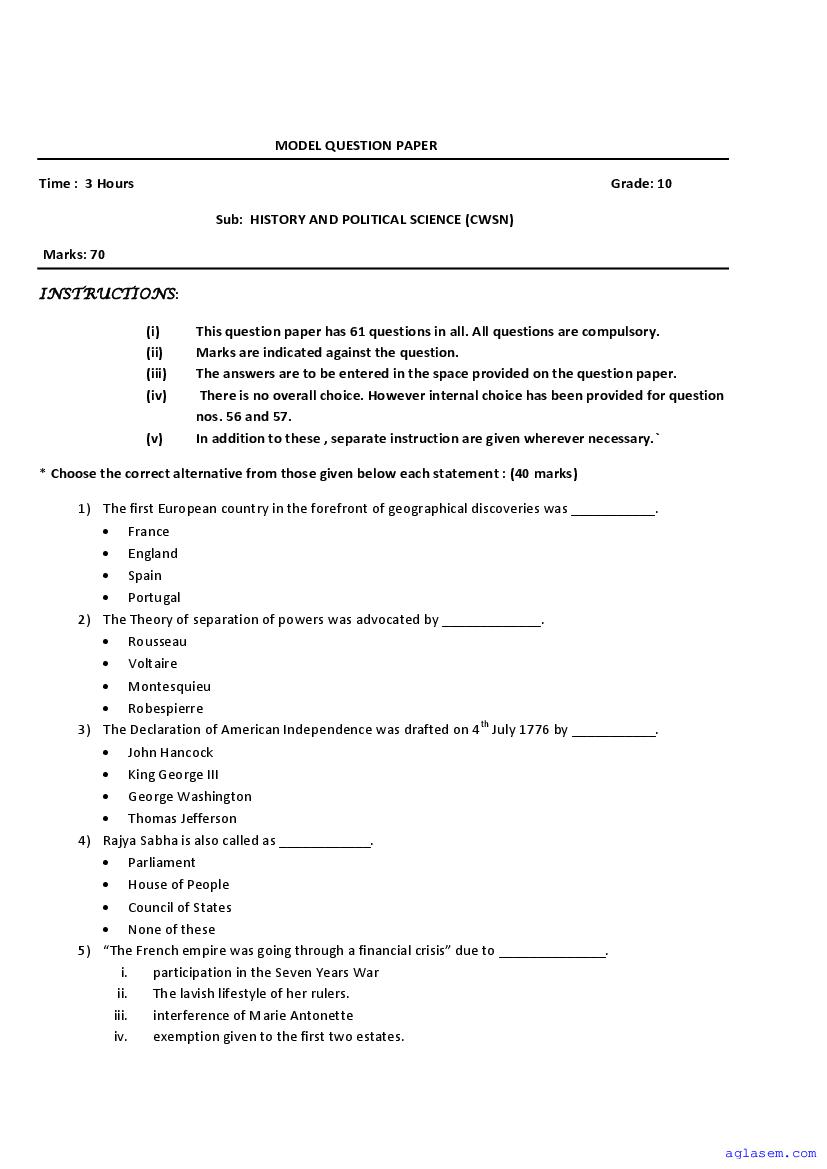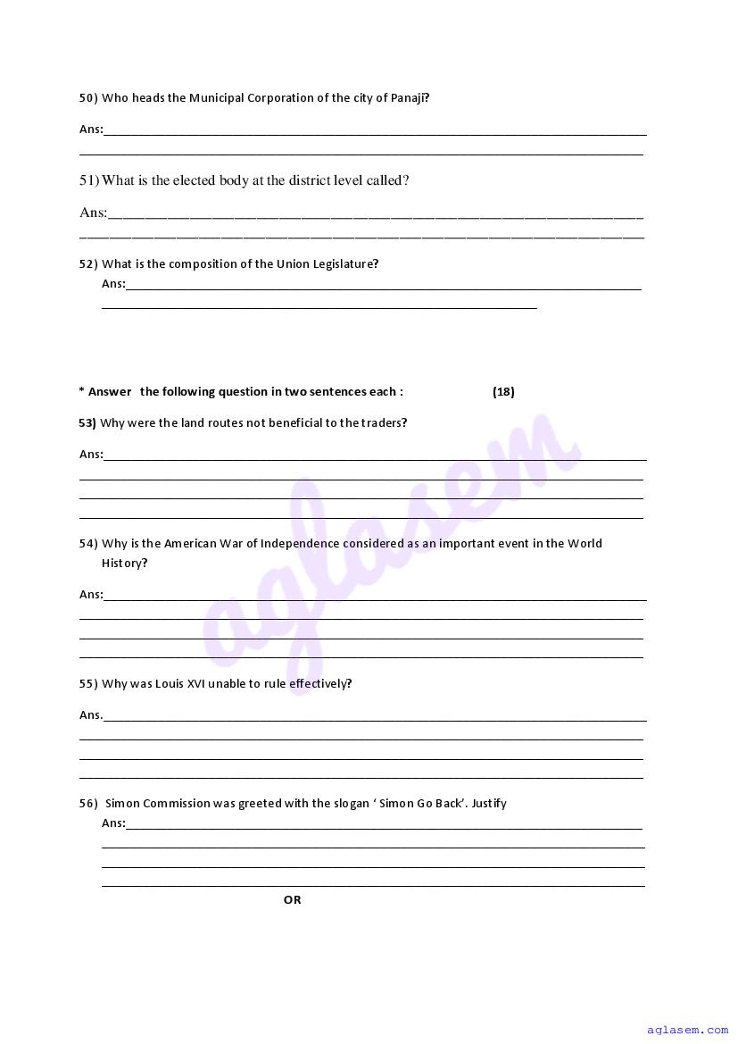| Study Material Here | Goa Board Sample Question Paper of Class 10 History & Political Science |