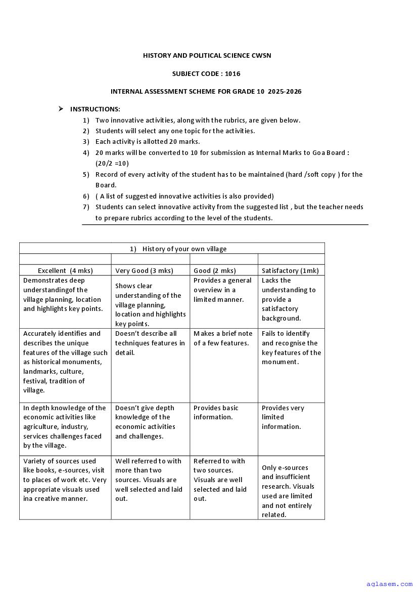Goa Board SSC History & Political Science Sample Paper – An Overview