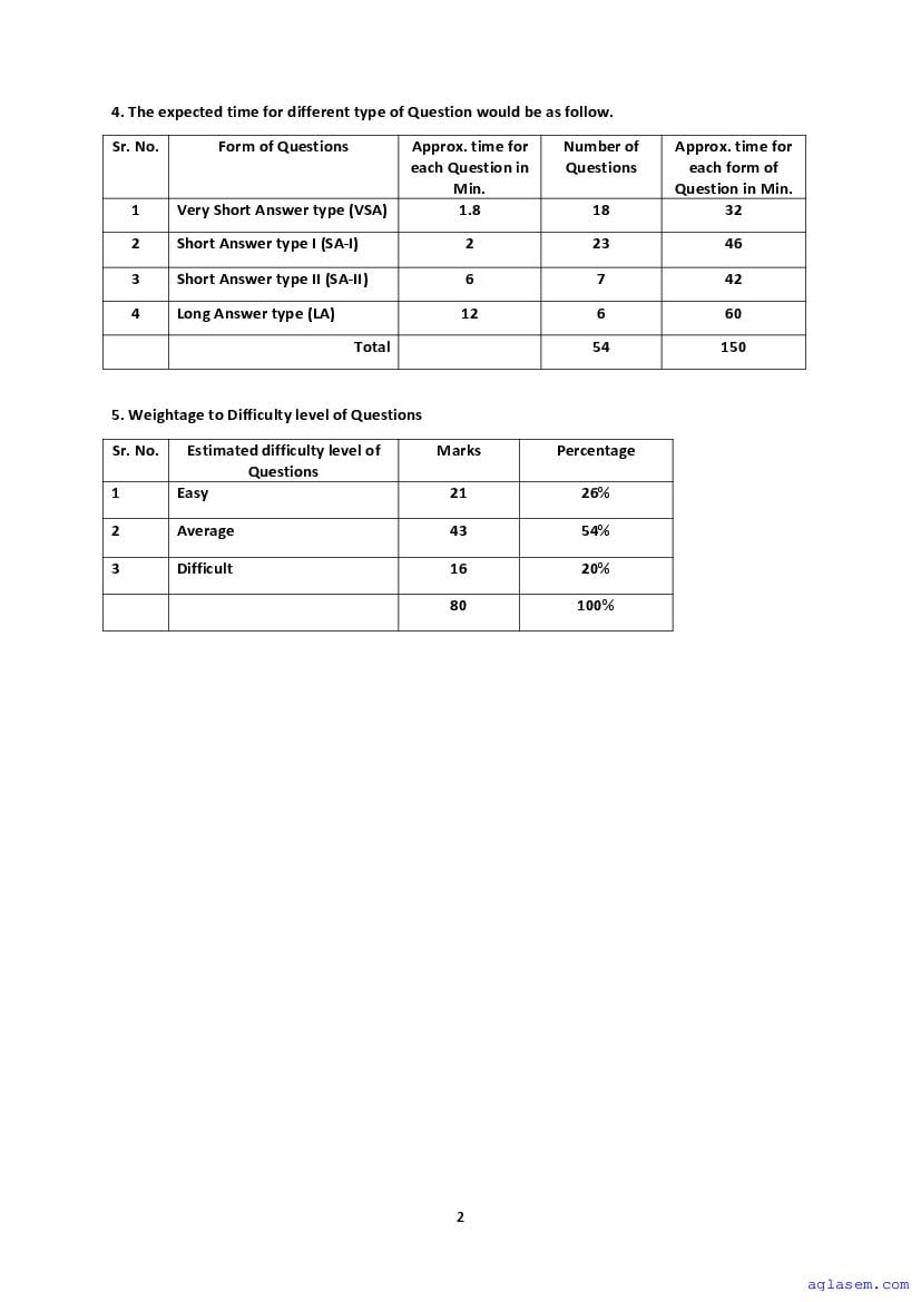 Similarly the class wise example question papers for GBSHSE are as follows.