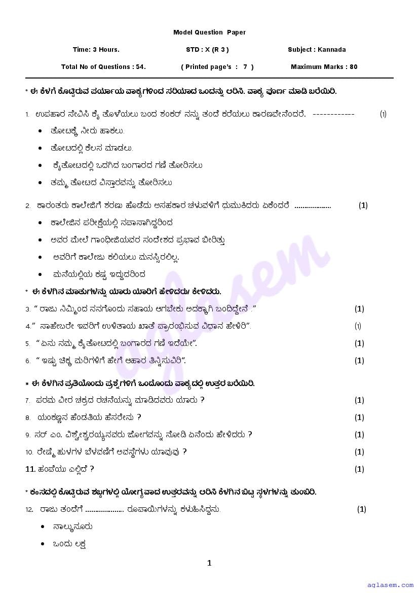 The Goa Board Model Paper for SSC (Class 10) Kannada is as follows.