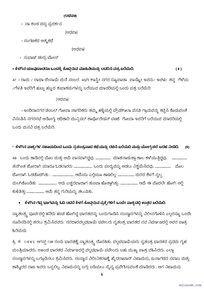 | Study Material Here | Goa Board Sample Question Paper of Class 10 Kannada |