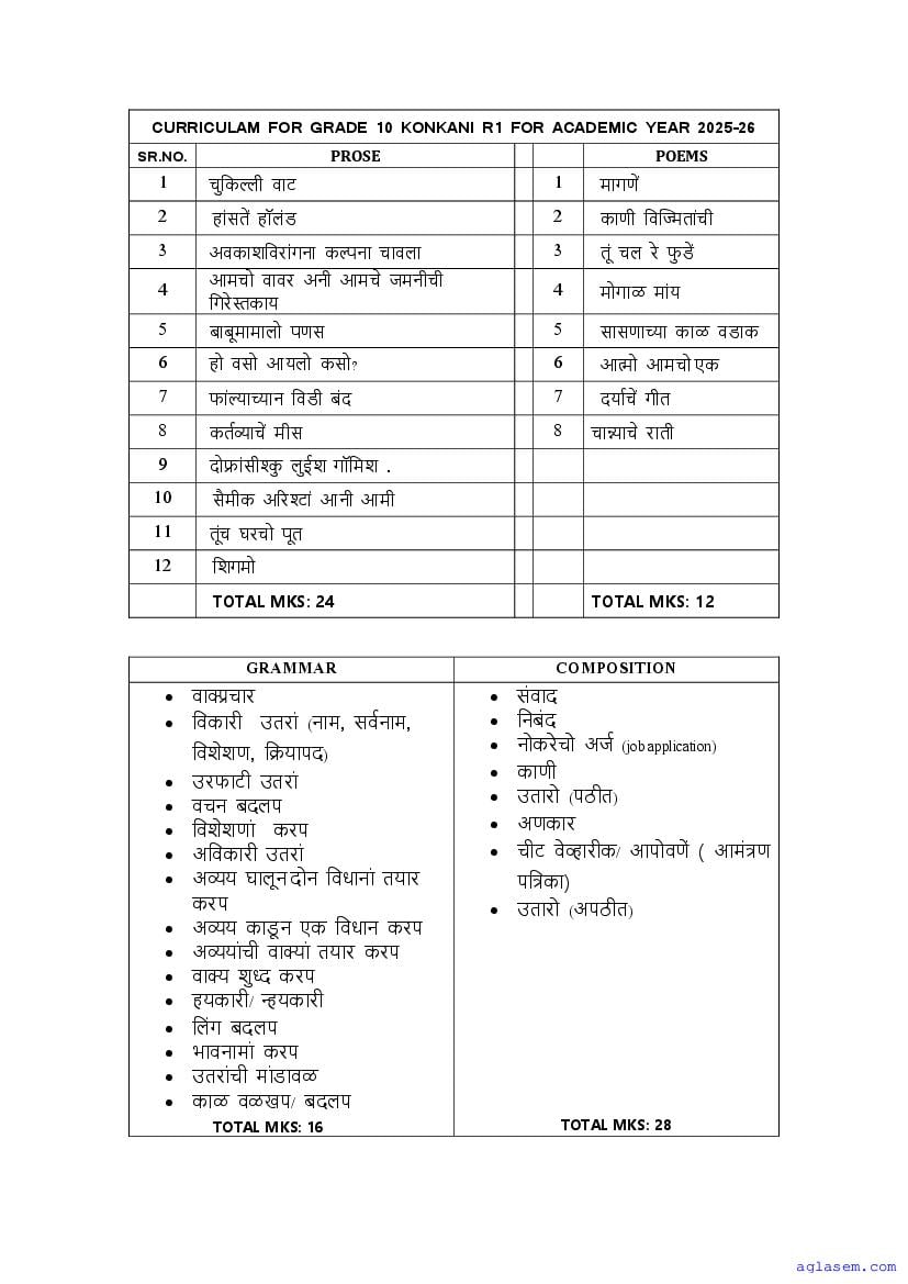 - Goa Board Class 10th Konkani Syllabus – You should refer the Goa SSC Syllabus for Konkani as prescribed by the Goa Board of Secondary and Higher Secondary Education.