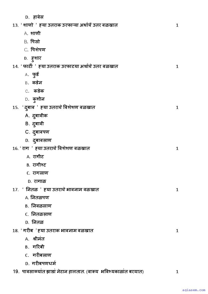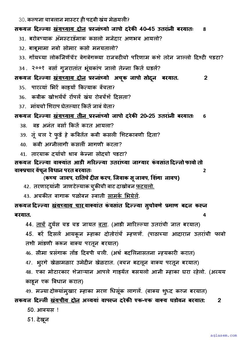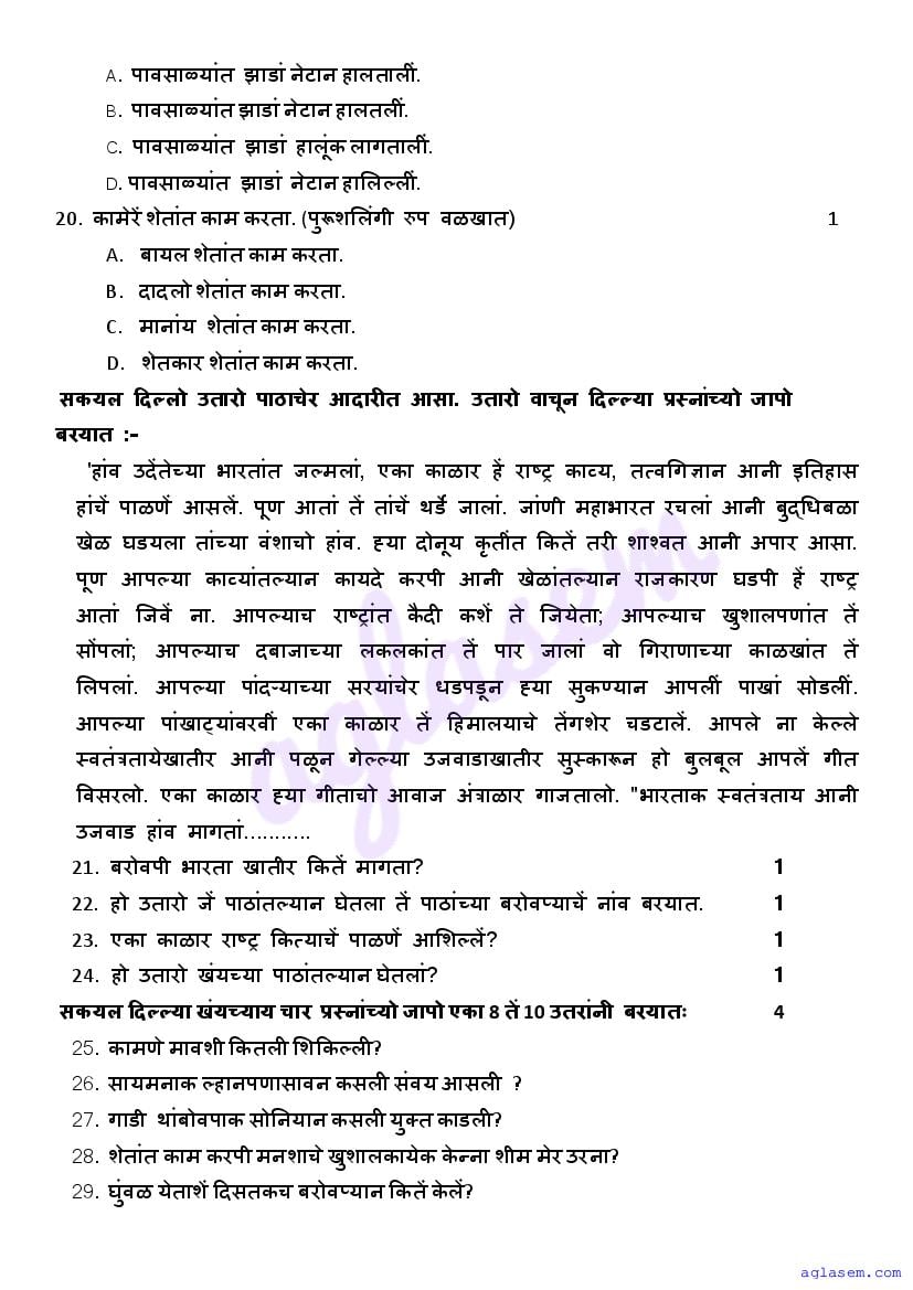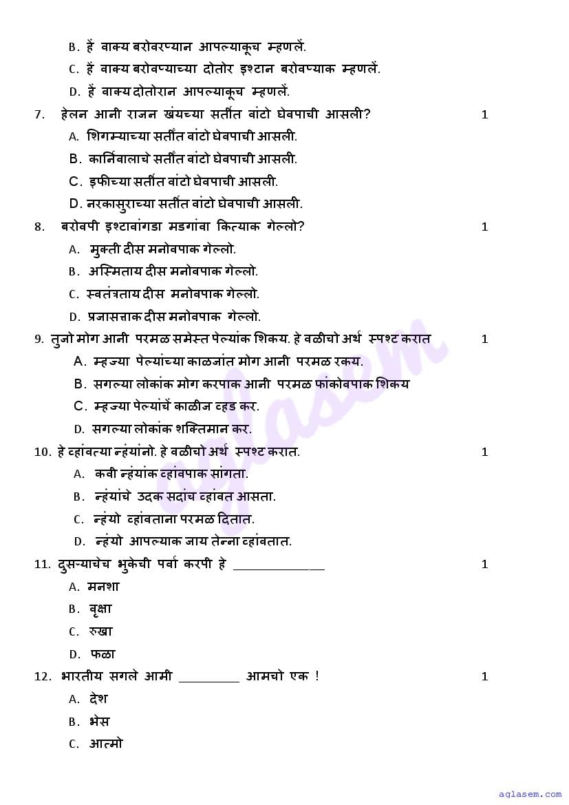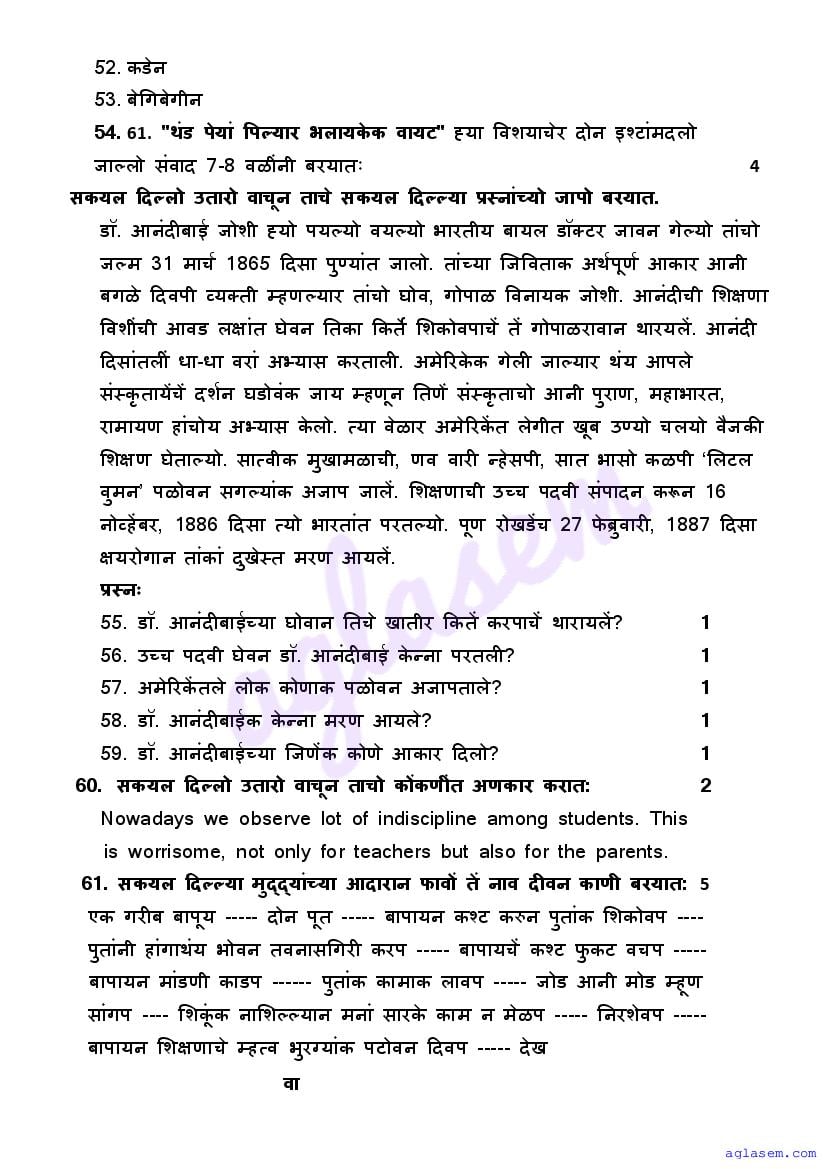 | Study Material Here | Goa Board Sample Question Paper of Class 10 Konkani |