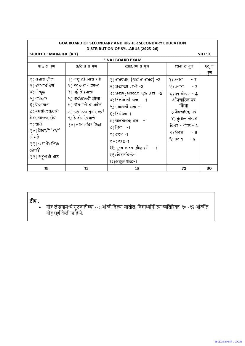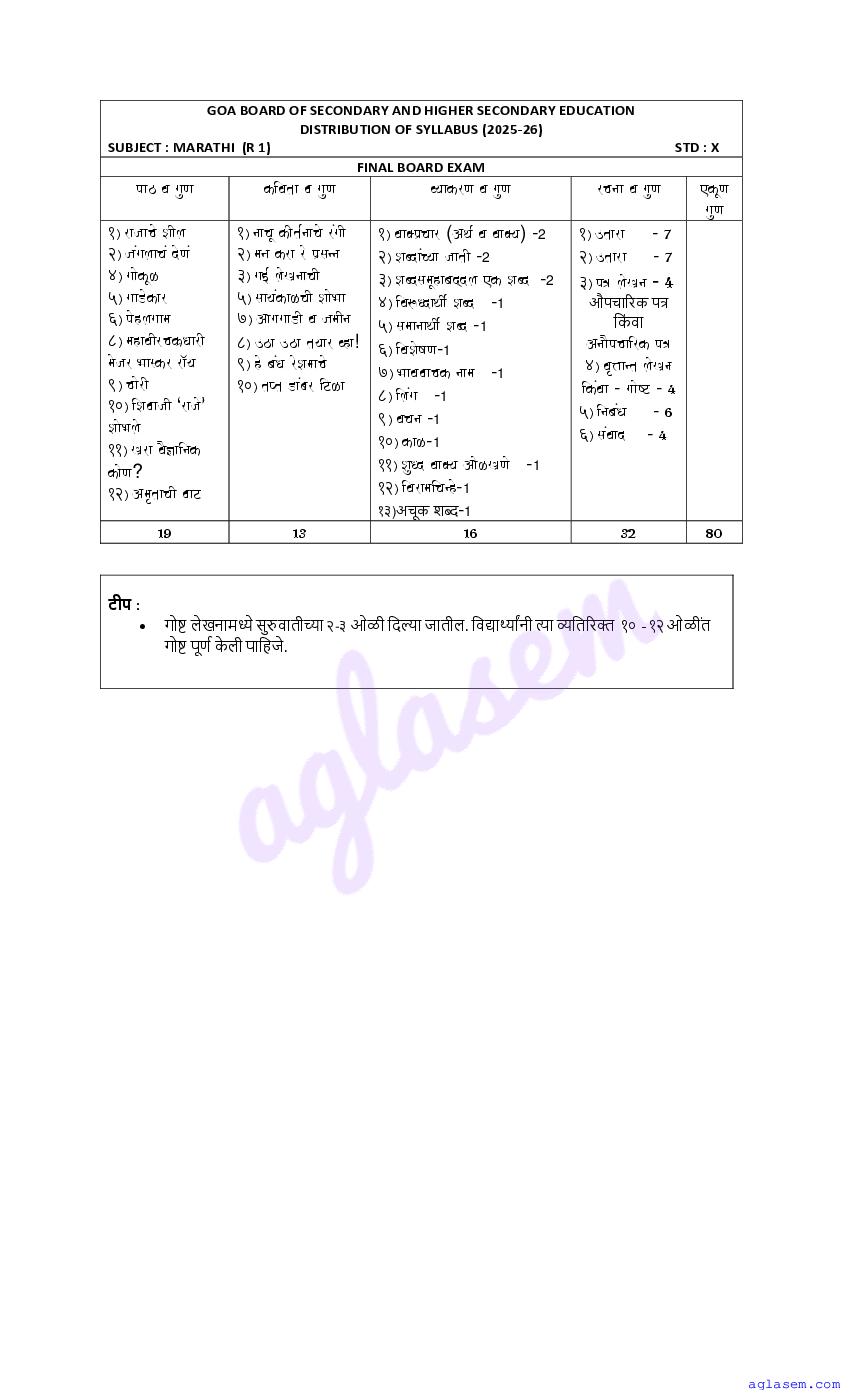 - Goa Board Class 10th Marathi Syllabus – You should refer the Goa SSC Syllabus for Marathi as prescribed by the Goa Board of Secondary and Higher Secondary Education.