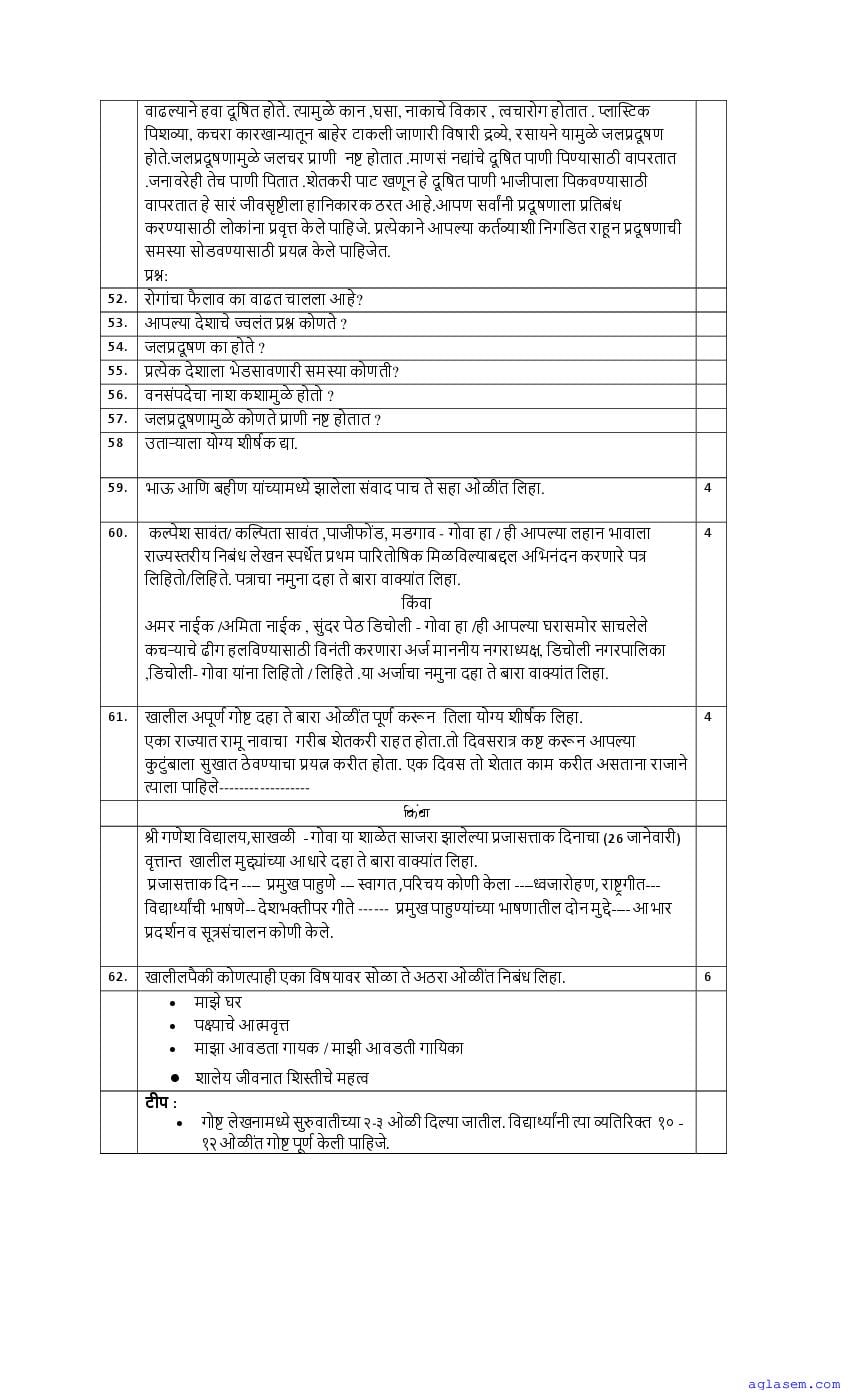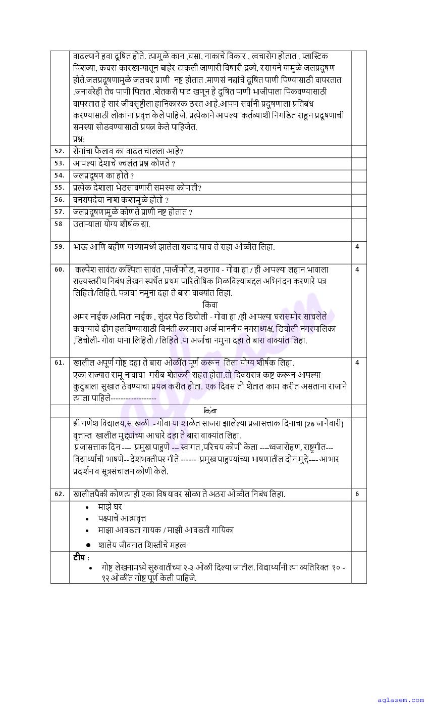 | Study Material Here | Goa Board Sample Question Paper of Class 10 Marathi |