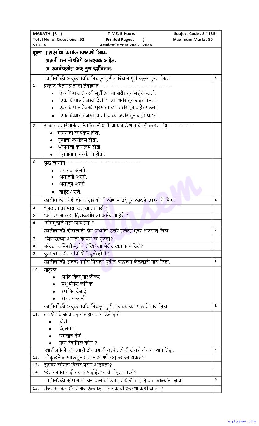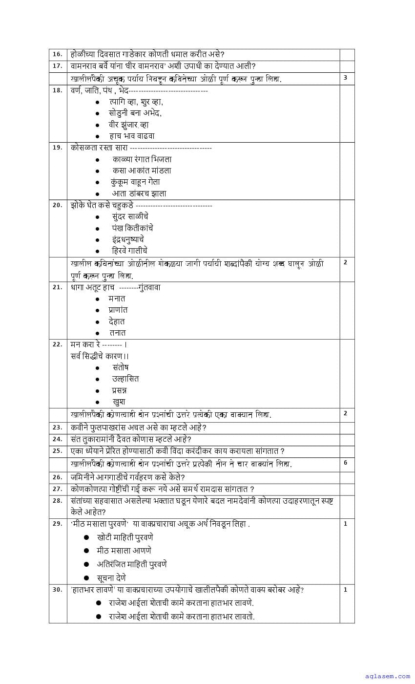 The Goa Board Model Paper for SSC (Class 10) Marathi is as follows.