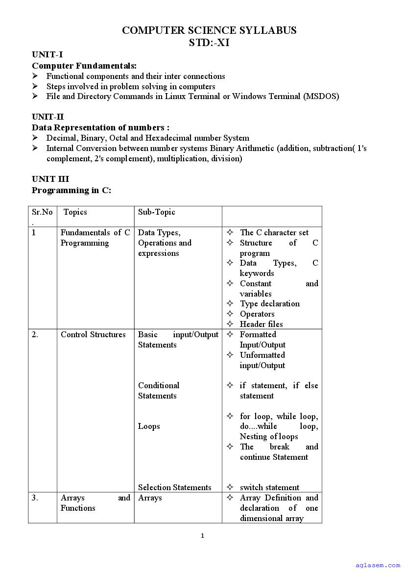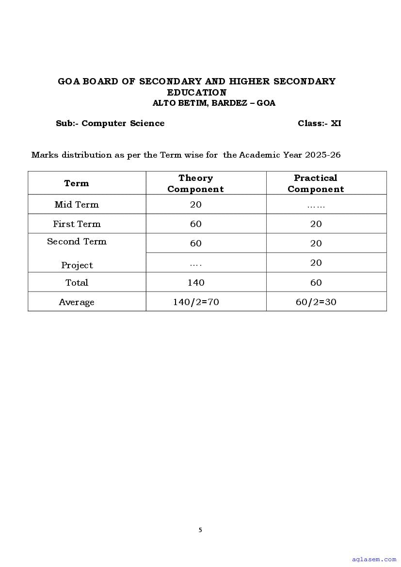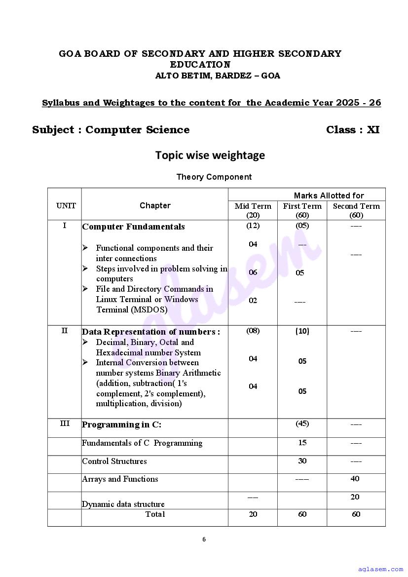- Goa Board Class 11th Computer Science Syllabus – You should refer the Goa Class 11 Syllabus for Computer Science as prescribed by the Goa Board of Secondary and Higher Secondary Education.