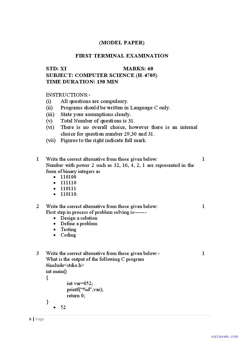 The Goa Board Model Paper for Class 11 (Class 11) Computer Science is as follows.