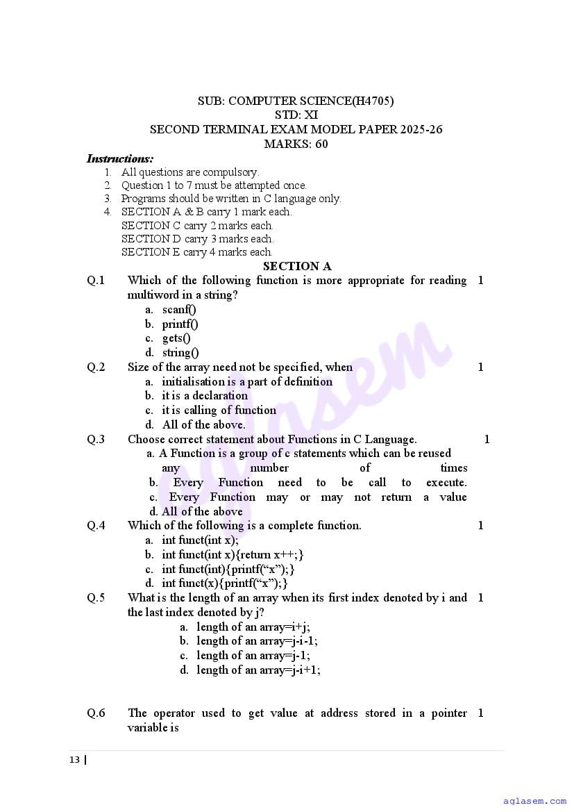 If you have any queries on Goa Board Class 11 Computer Science Model Question Paper 2026, then please ask in comments below.