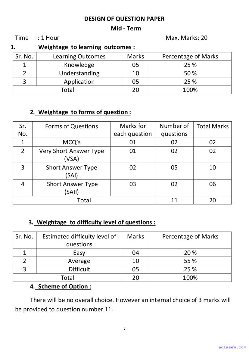 Similarly the class wise example question papers for GBSHSE are as follows.