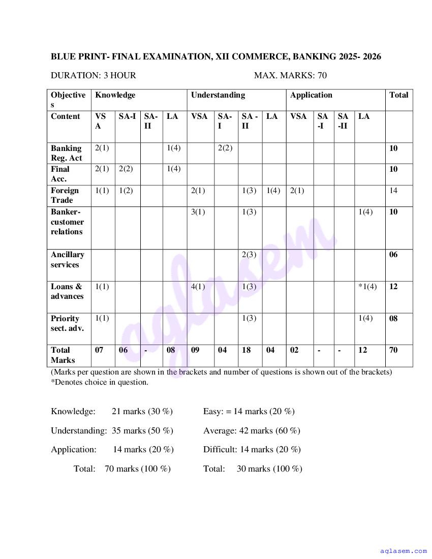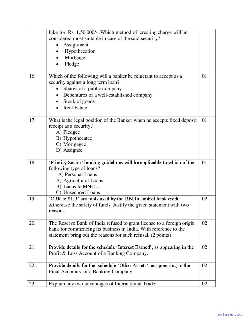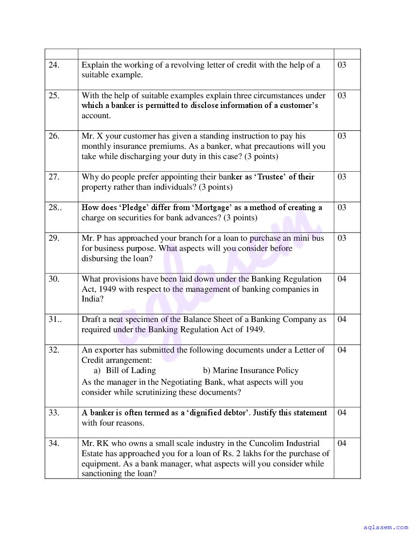 | Study Material Here | Goa Board Sample Question Paper of Class 12 Banking |