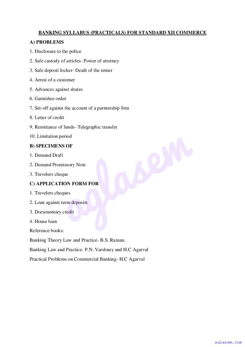 - Goa Board Class 12th Banking Syllabus – You should refer the Goa HSSC Syllabus for Banking as prescribed by the Goa Board of Secondary and Higher Secondary Education.