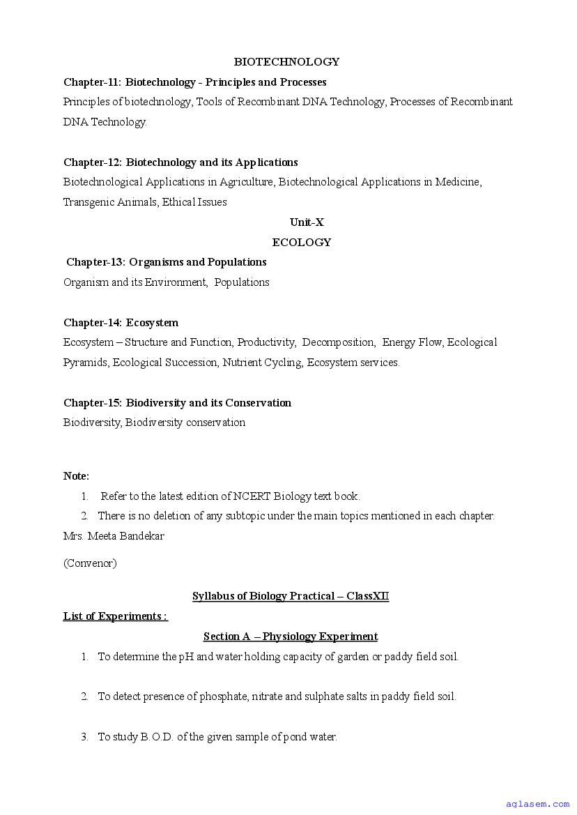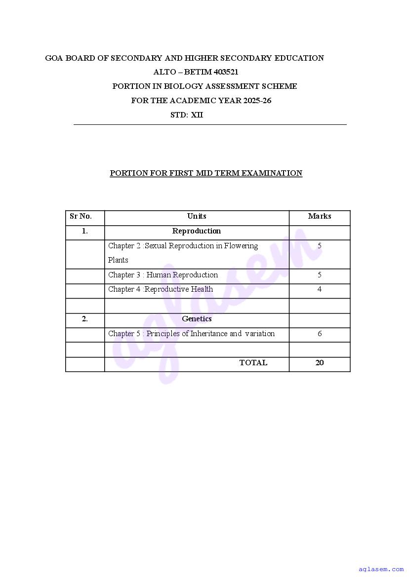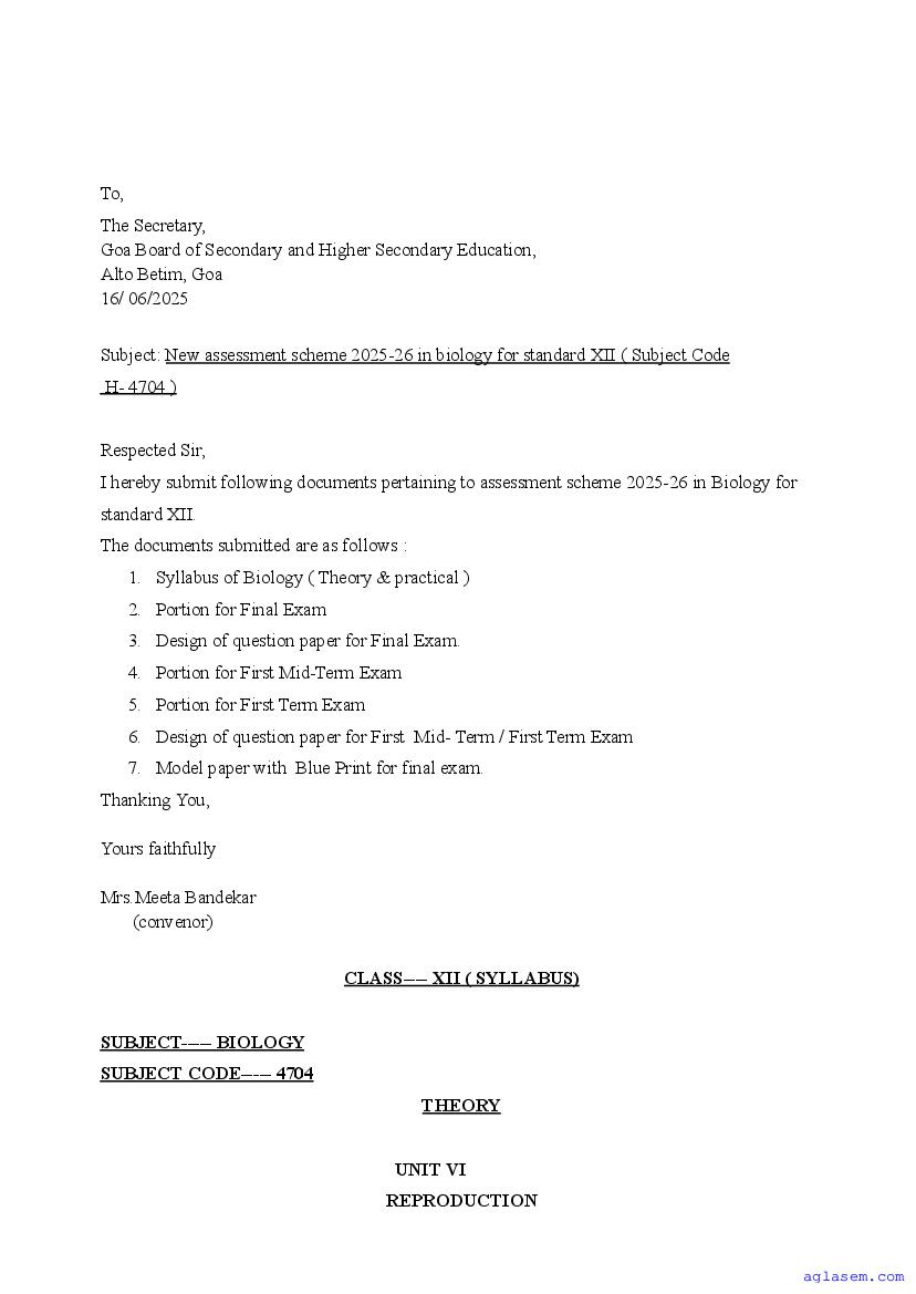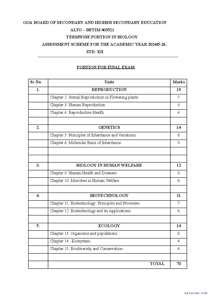 - Goa Board Class 12th Biology Syllabus – You should refer the Goa HSSC Syllabus for Biology as prescribed by the Goa Board of Secondary and Higher Secondary Education.