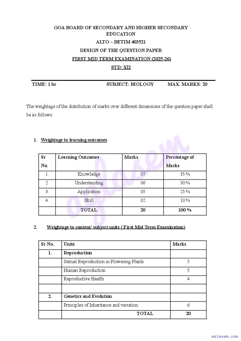 If you have any queries on Goa Board HSSC Biology Model Question Paper 2026, then please ask in comments below.