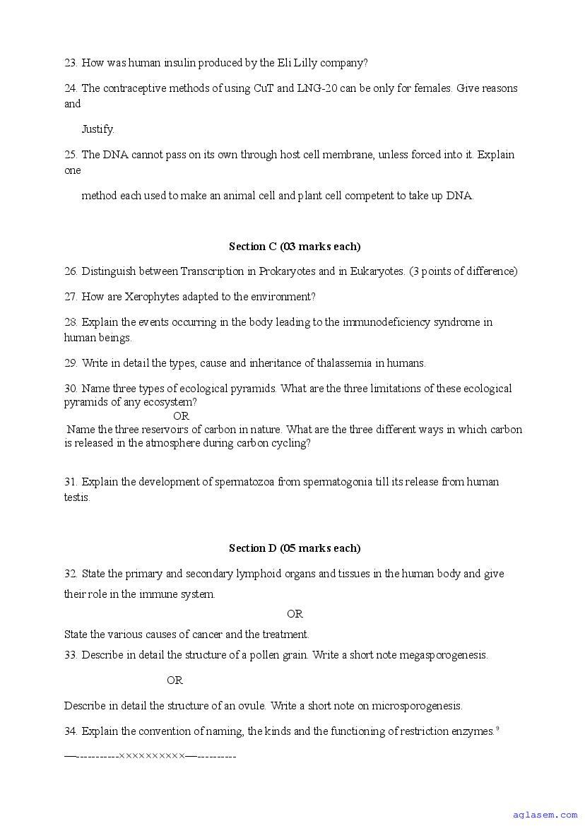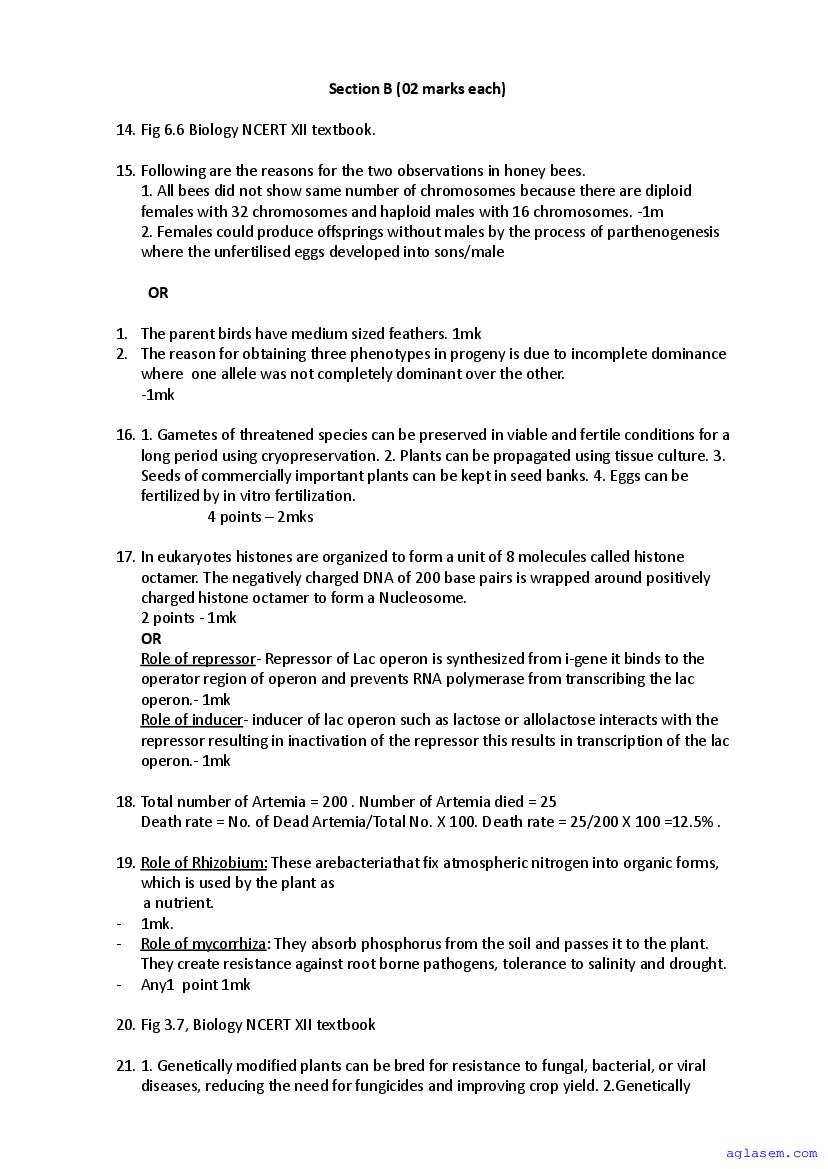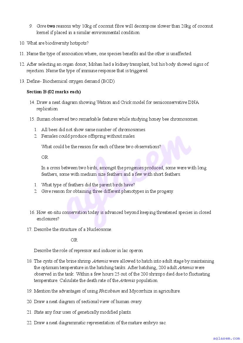 | Study Material Here | Goa Board Sample Question Paper of Class 12 Biology |
