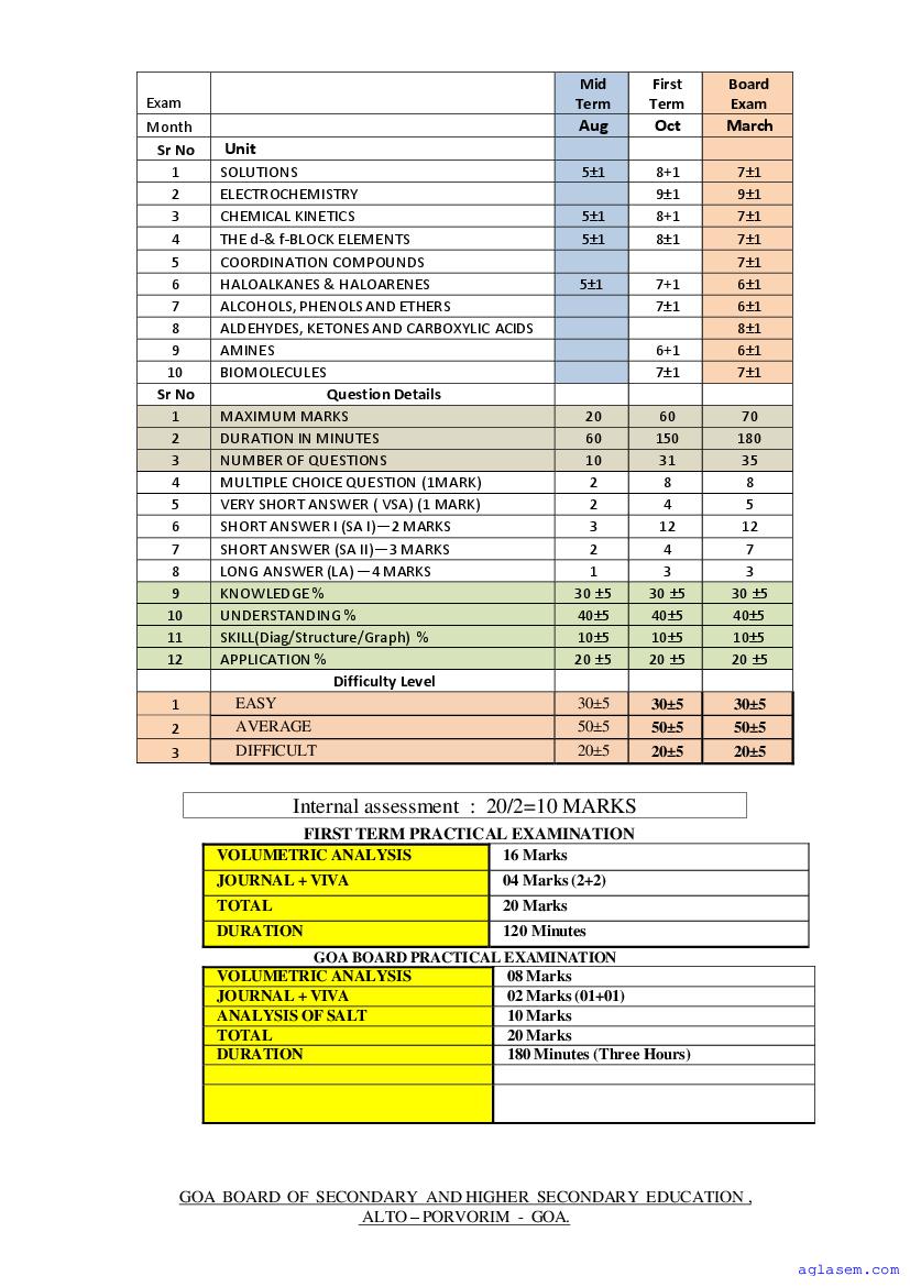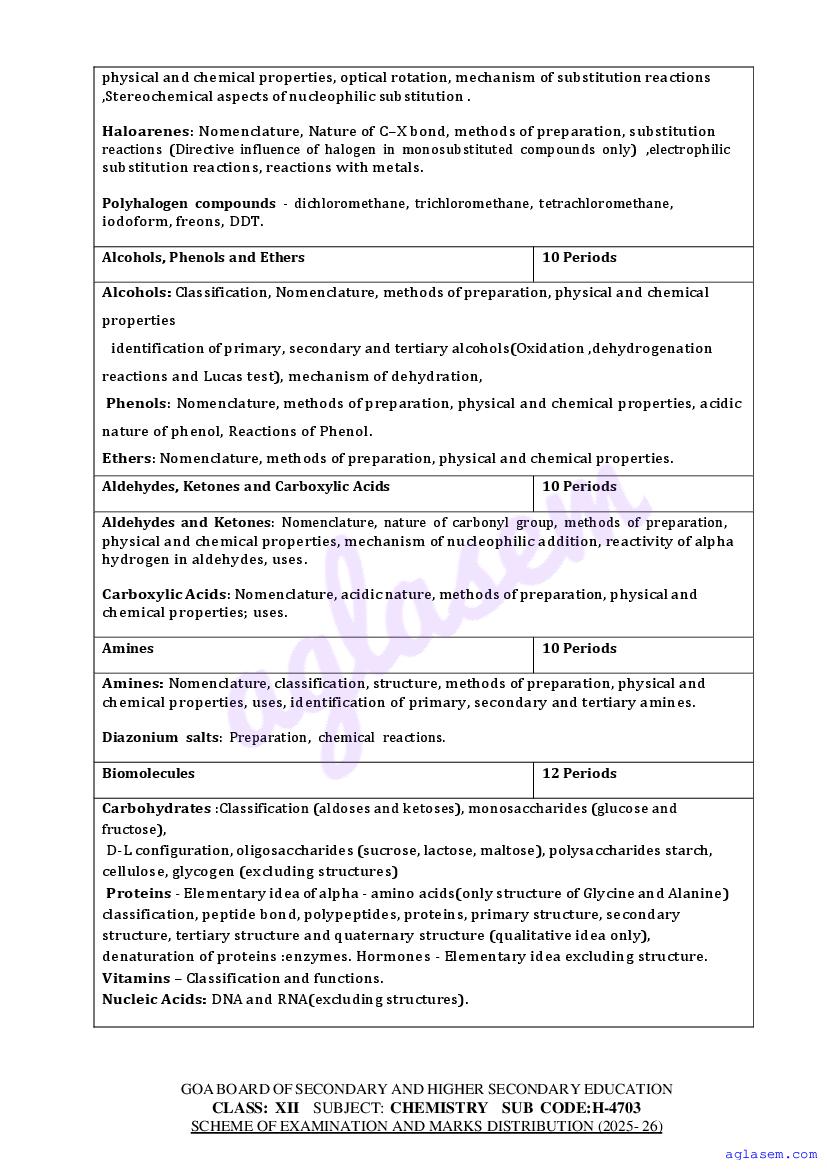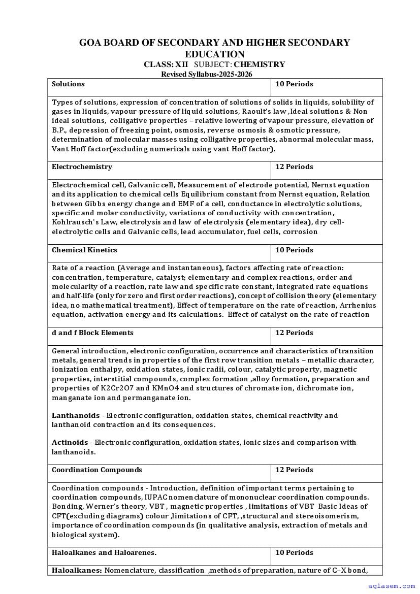 - Goa Board Class 12th Chemistry Syllabus – You should refer the Goa HSSC Syllabus for Chemistry as prescribed by the Goa Board of Secondary and Higher Secondary Education.