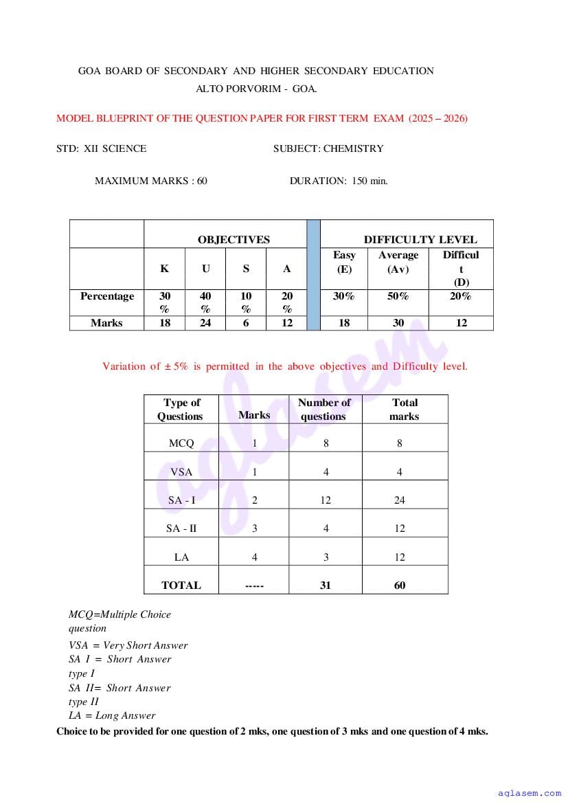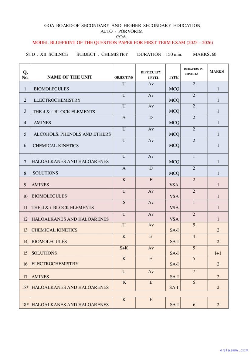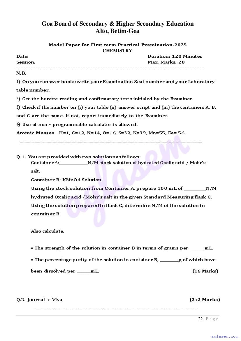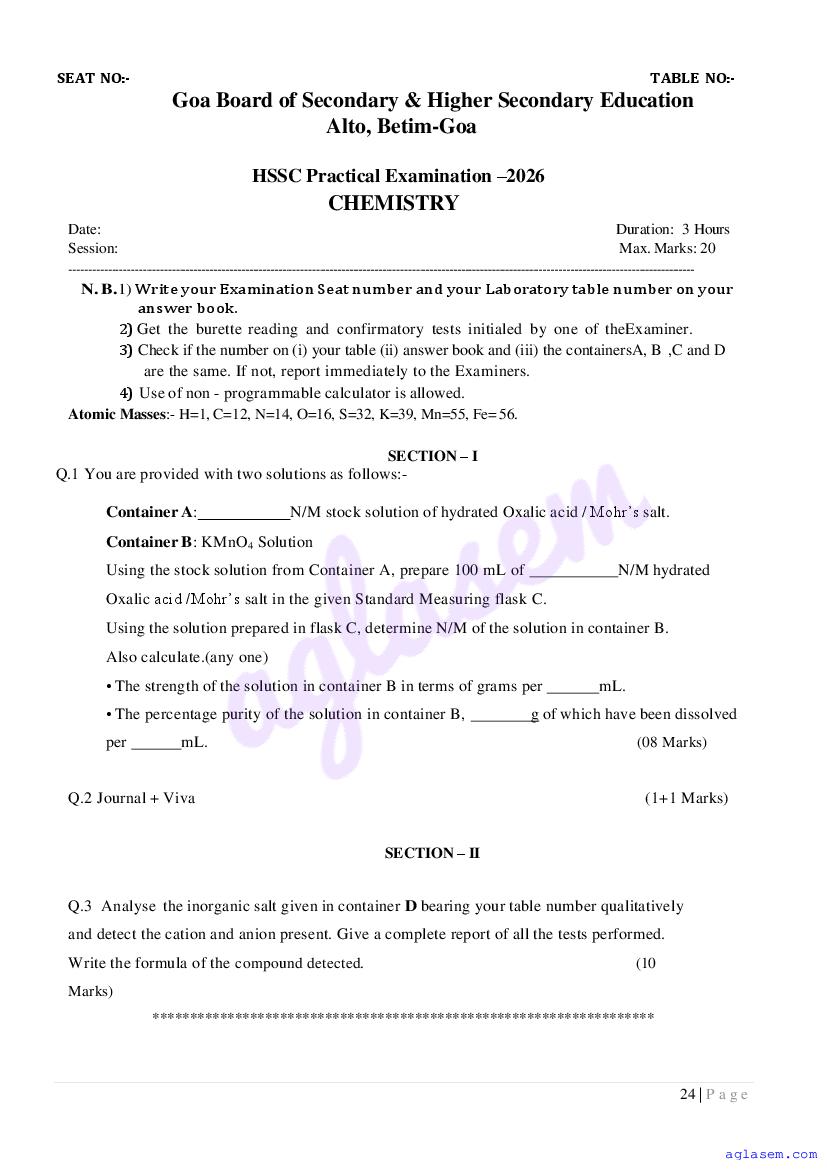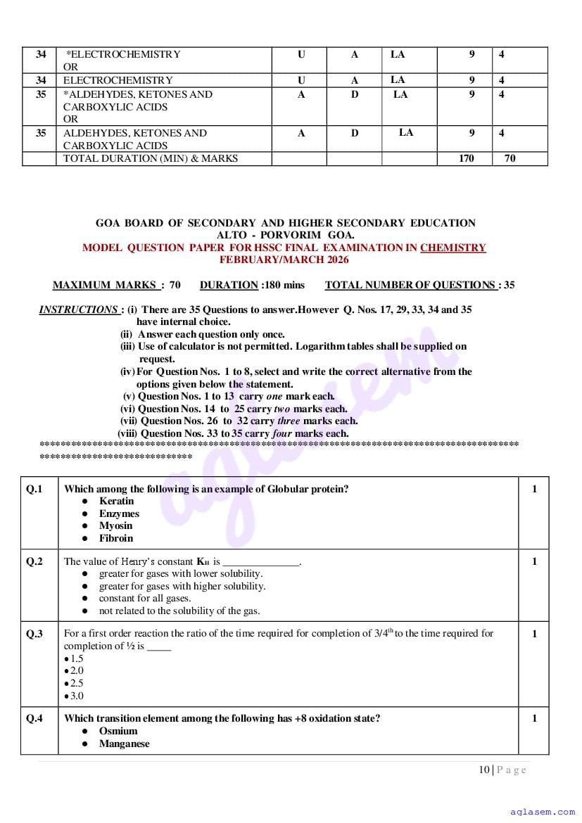 If you have any queries on Goa Board HSSC Chemistry Model Question Paper 2026, then please ask in comments below.