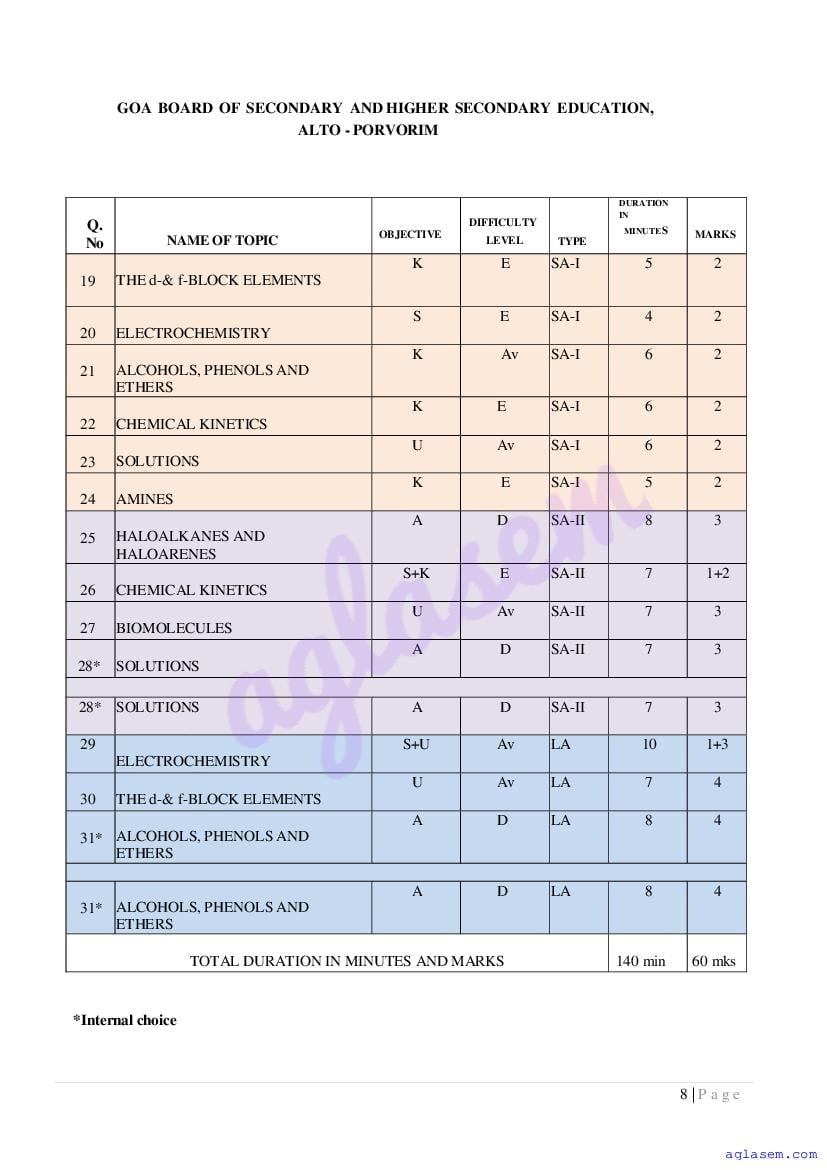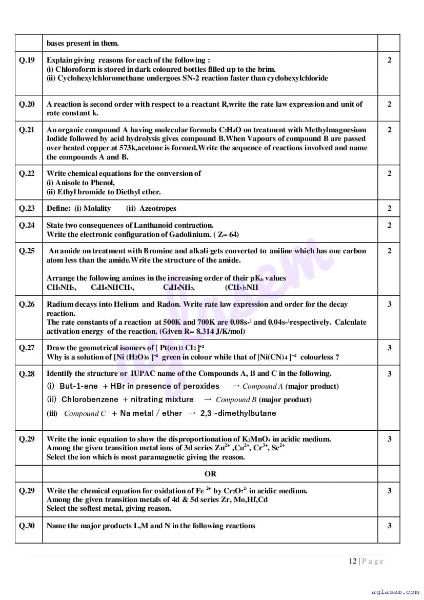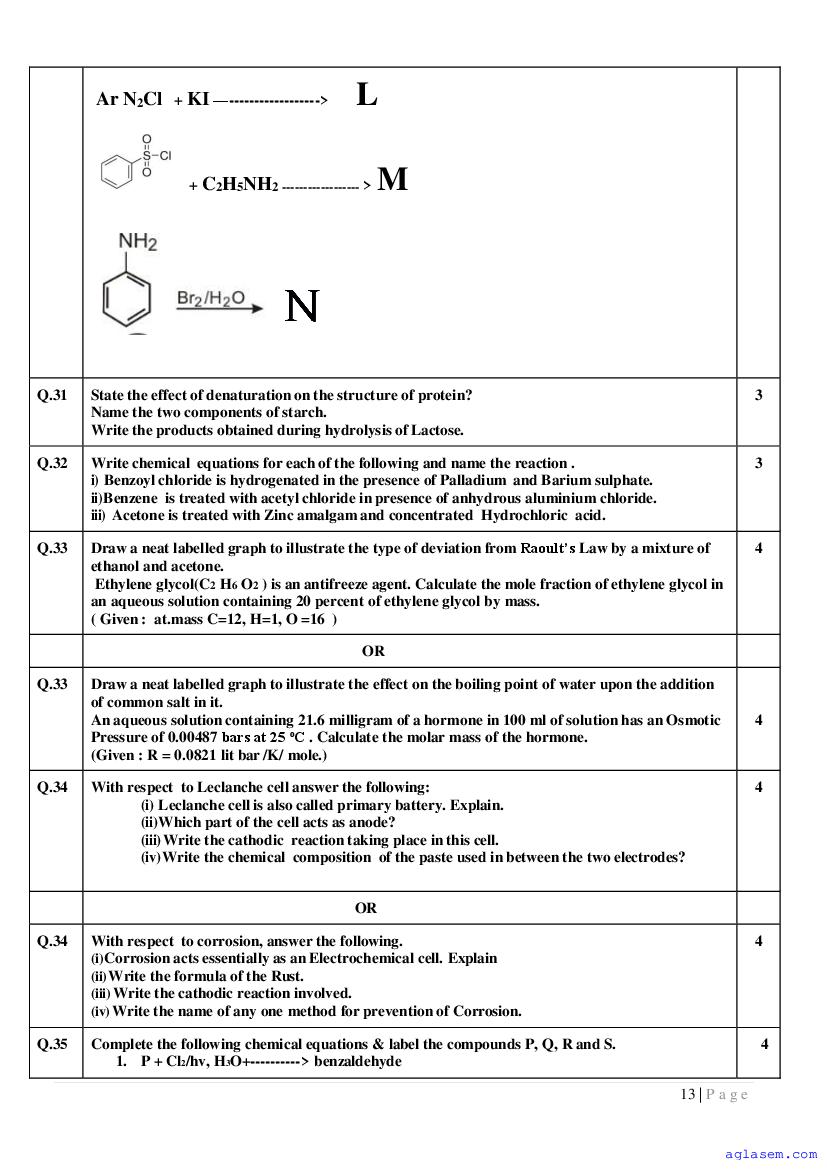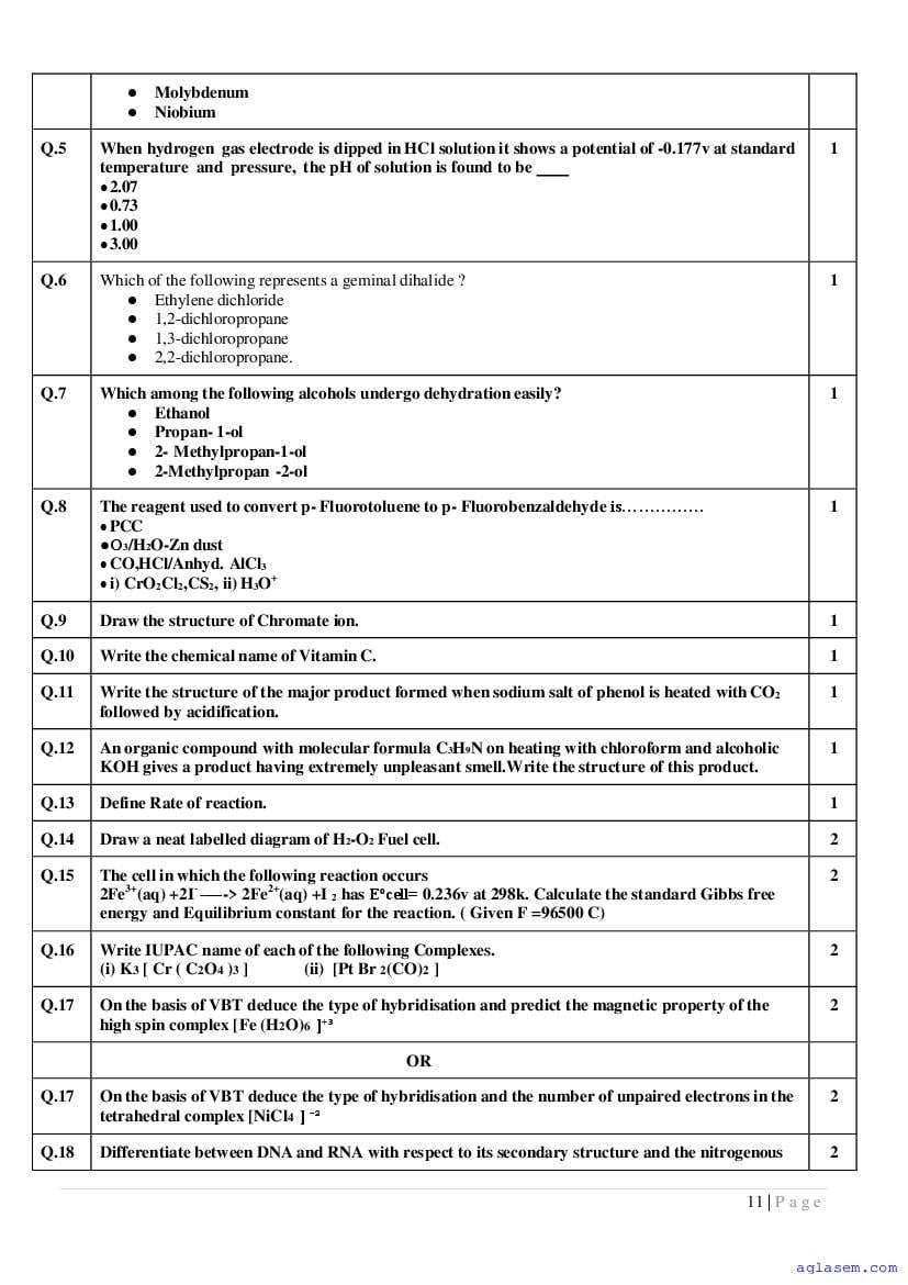 | Study Material Here | Goa Board Sample Question Paper of Class 12 Chemistry |
