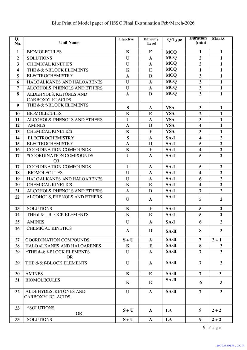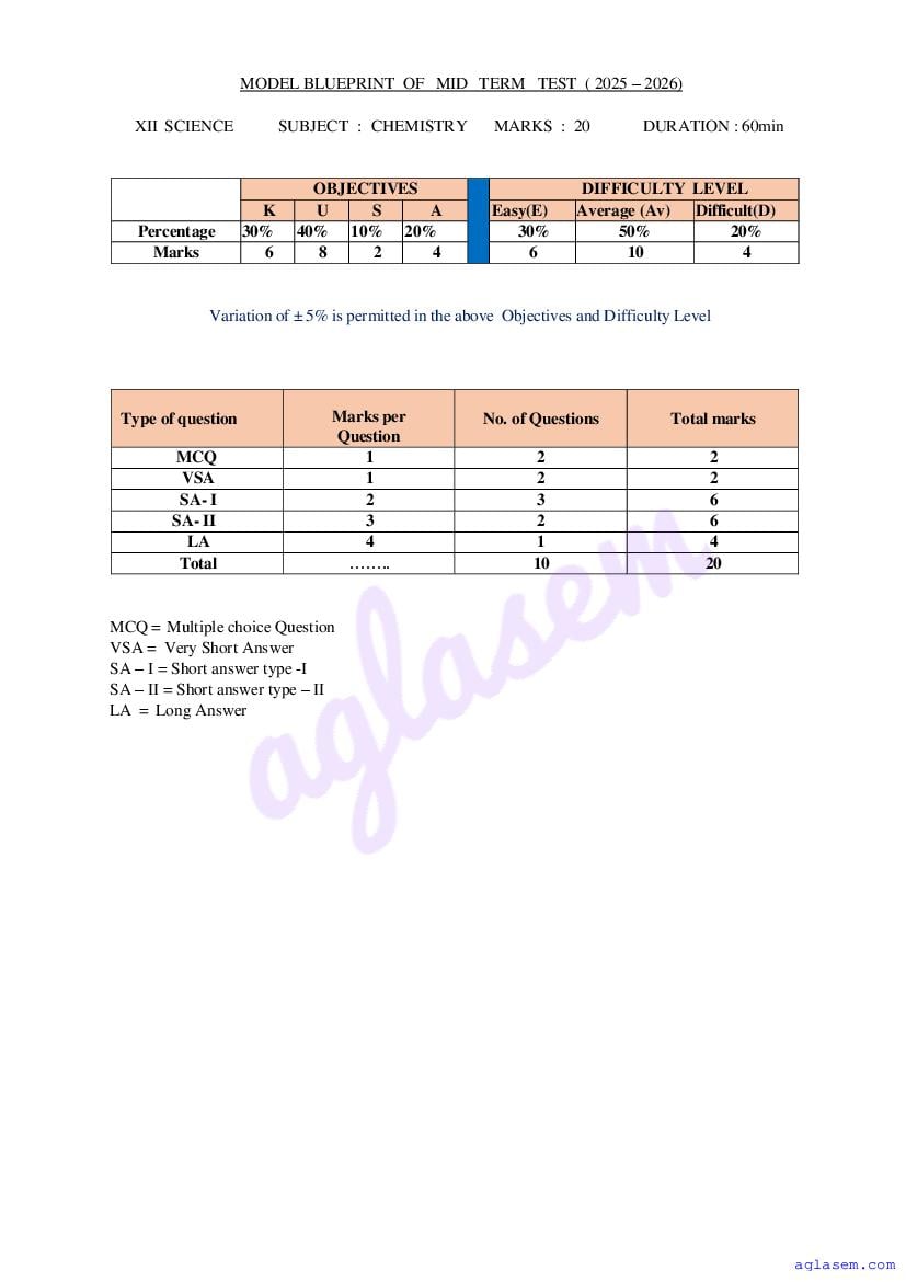 Goa Board HSSC Chemistry Model Question Paper 2026 is published by GBSHSE. You can download the Goa Class 12 Chemistry Sample Paper PDF from here on aglasem. This Goa Board HSSC Model Paper contains specimen questions from the latest Chemistry syllabus in a pattern similar to what you will get in actual HSSC exams. Therefore by solving the Chemistry sample paper, you can boost your exam preparation and target 100% marks.