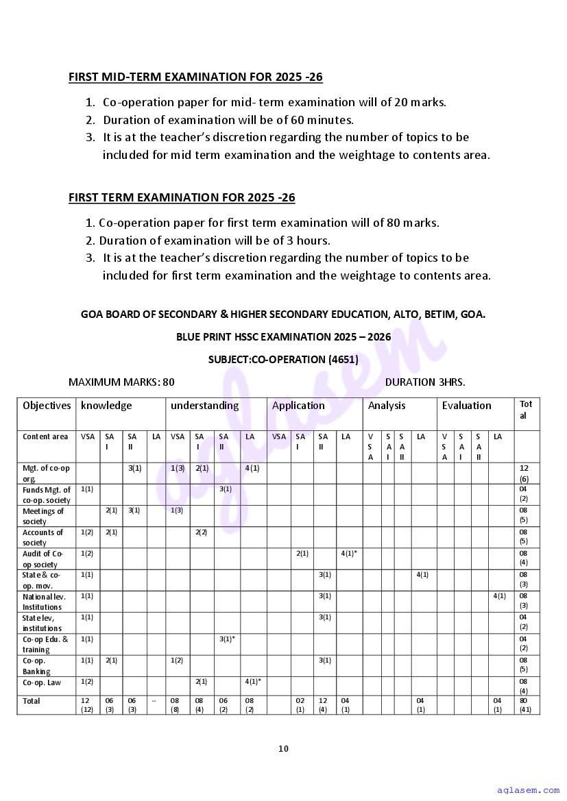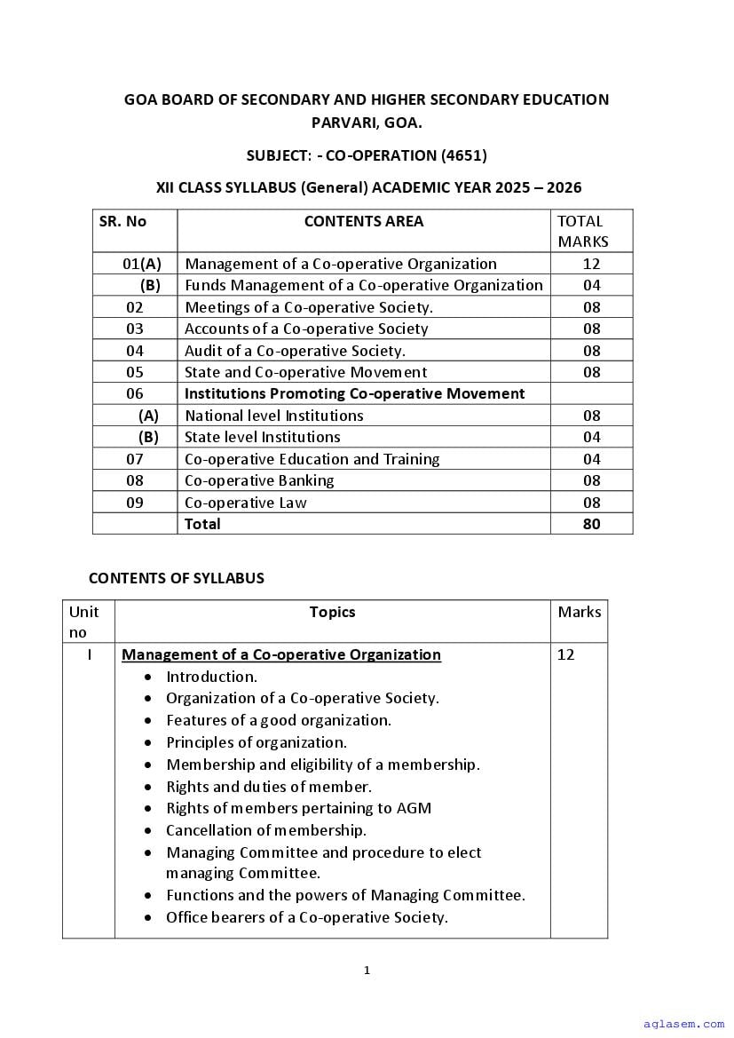 - Goa Board Class 12th Cooperation Syllabus – You should refer the Goa HSSC Syllabus for Cooperation as prescribed by the Goa Board of Secondary and Higher Secondary Education.