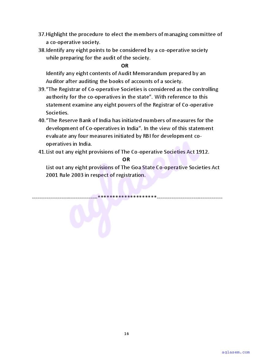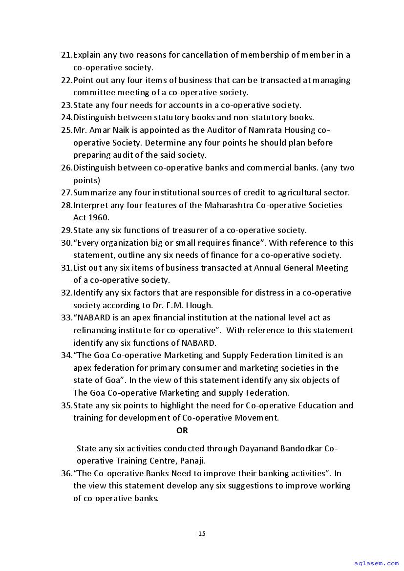 | Study Material Here | Goa Board Sample Question Paper of Class 12 Cooperation |