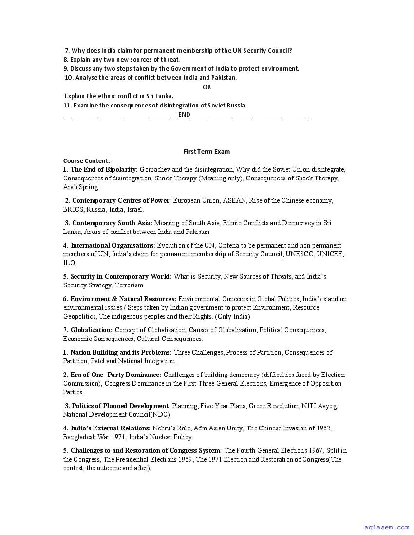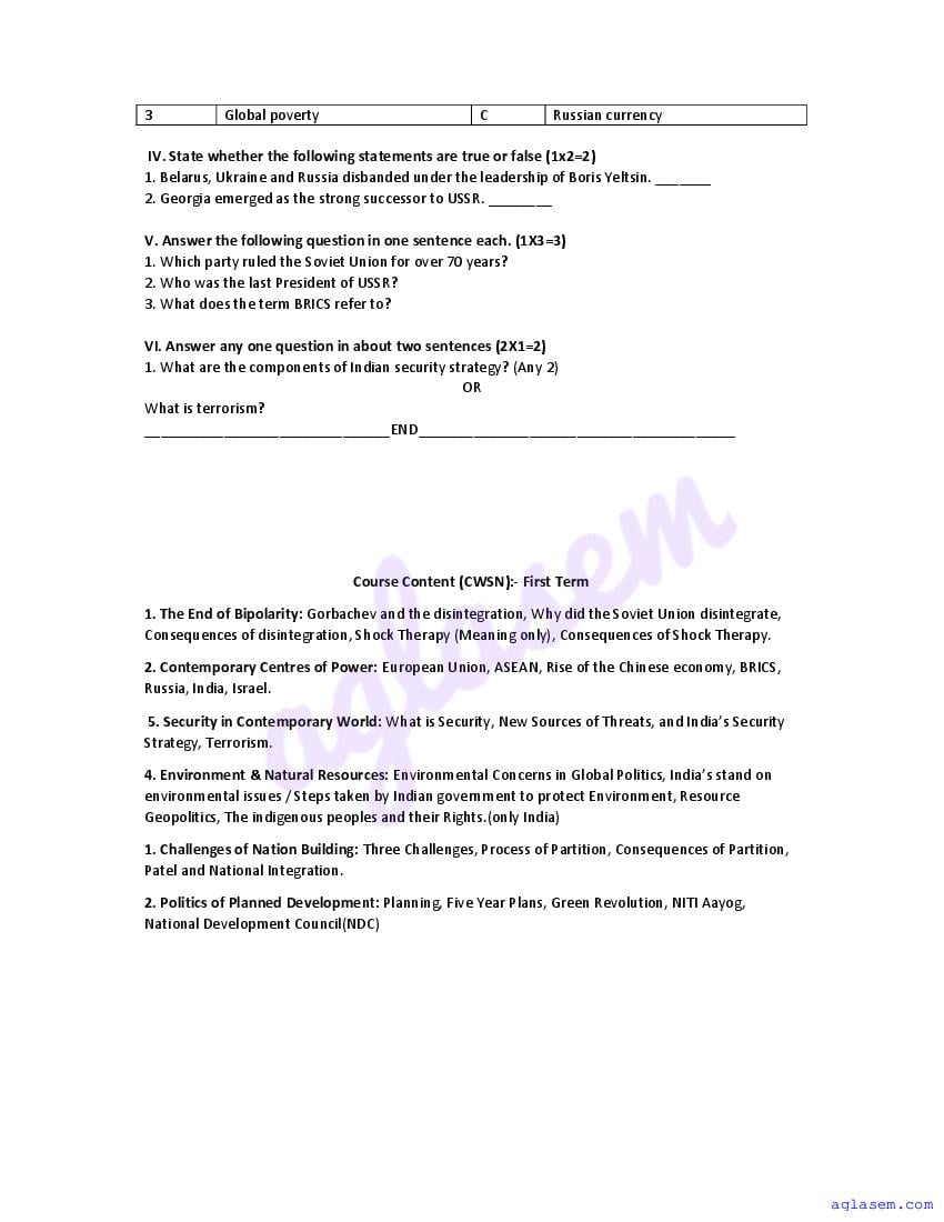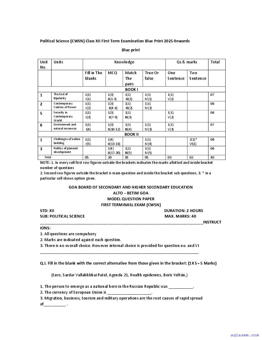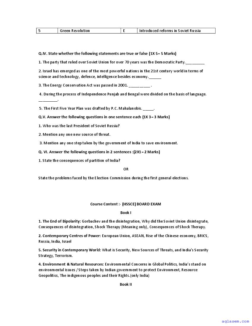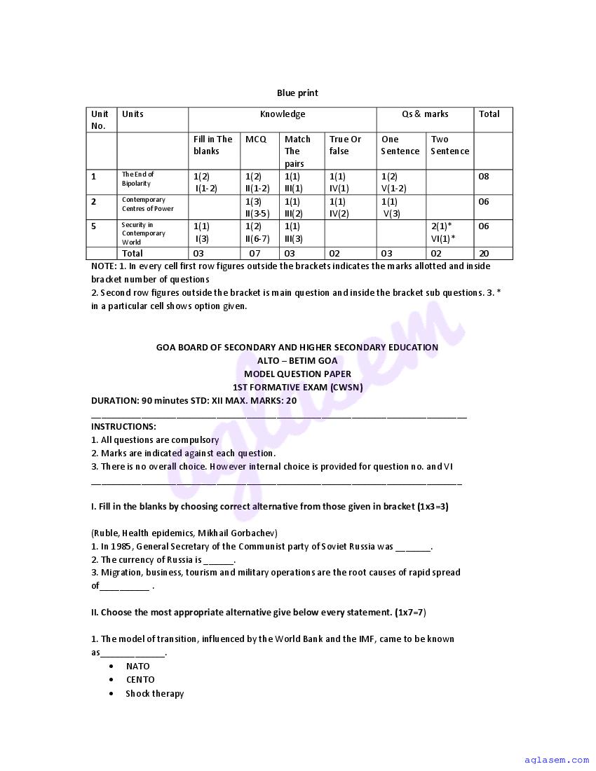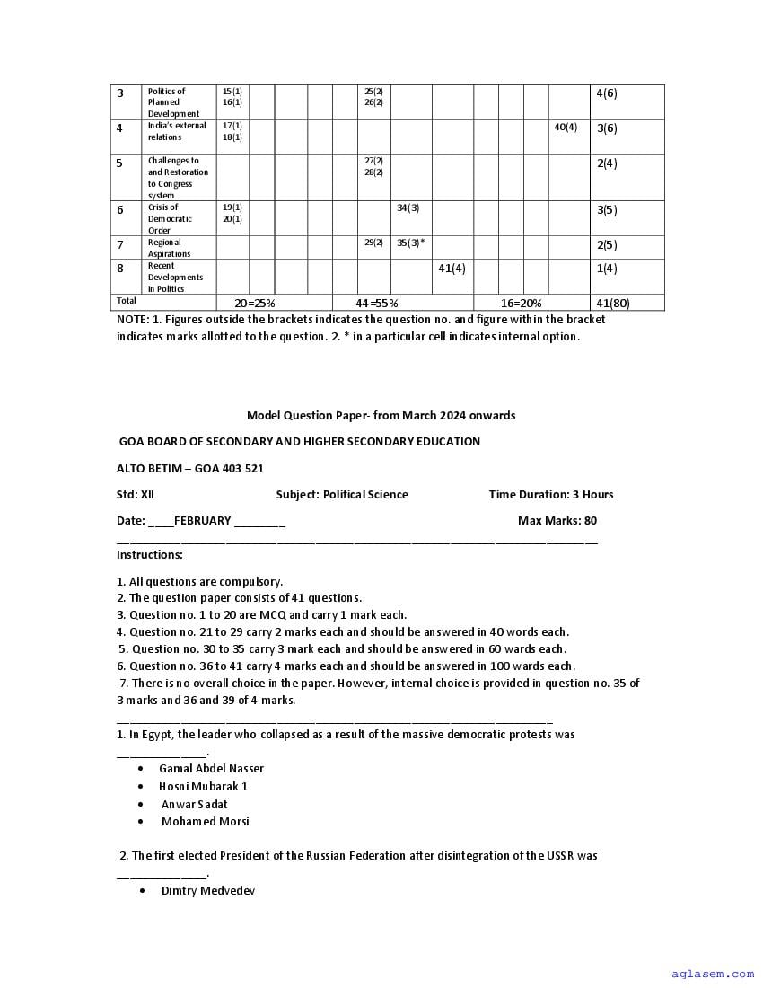 | Study Material Here | Goa Board Sample Question Paper of Class 12 Political Science |