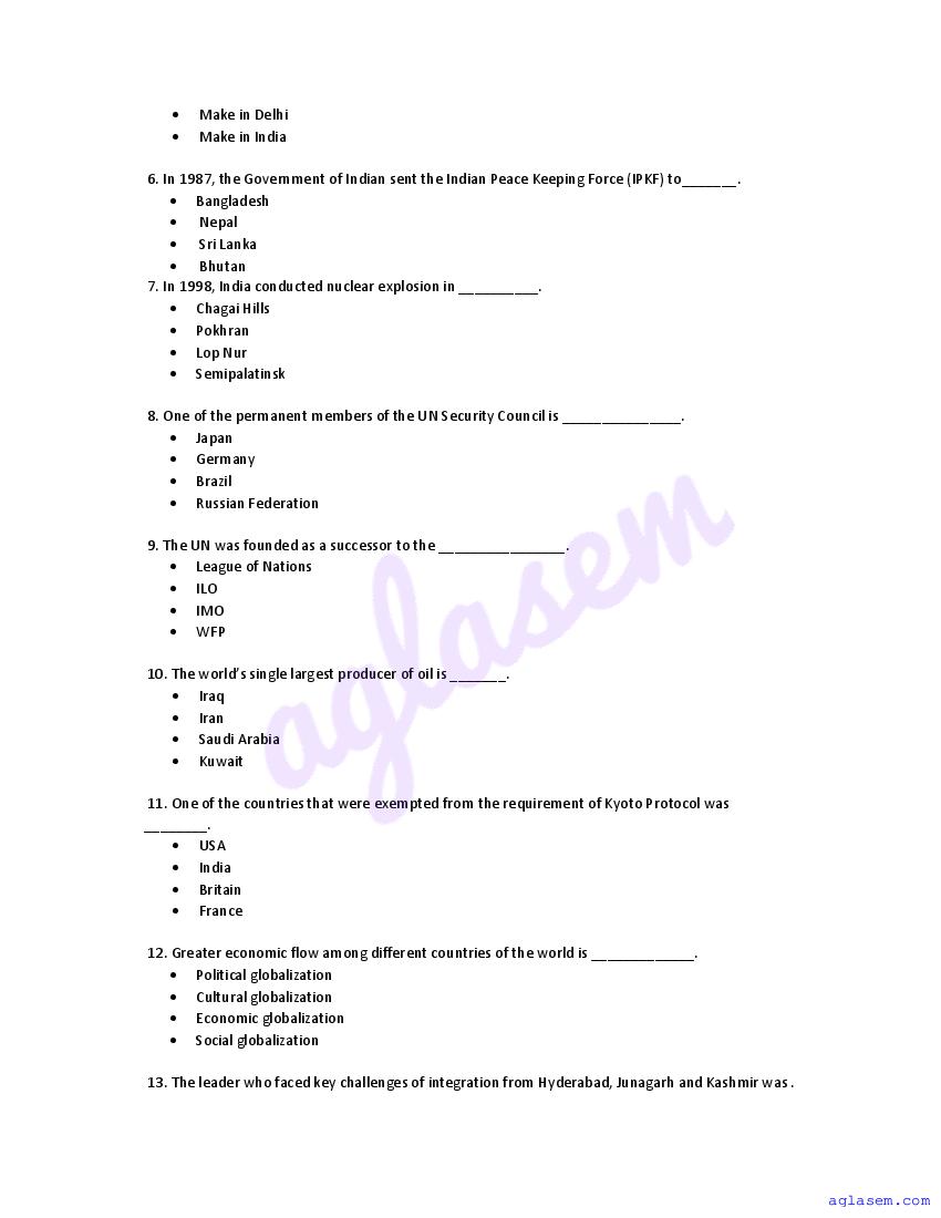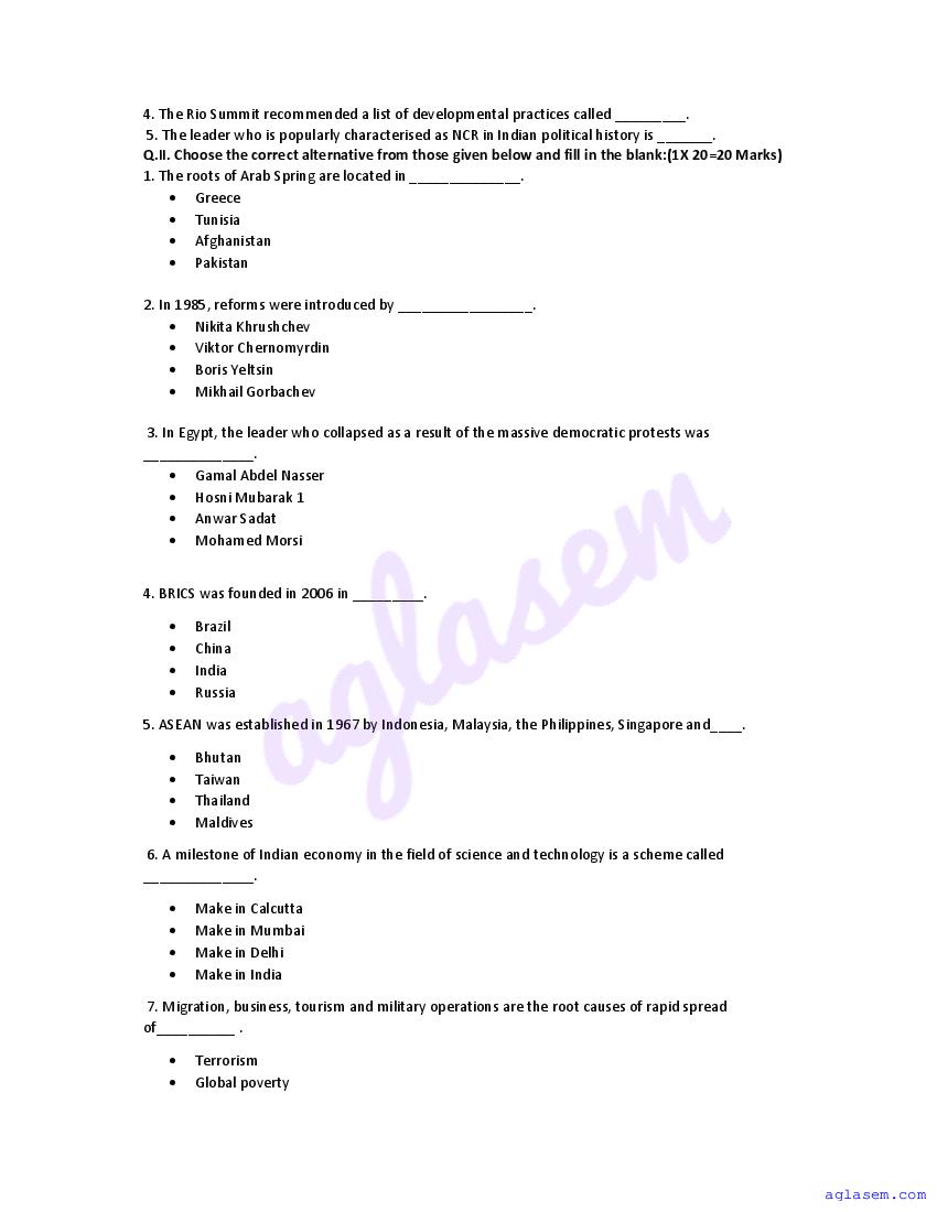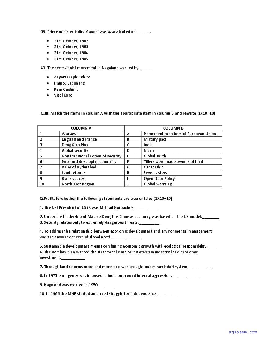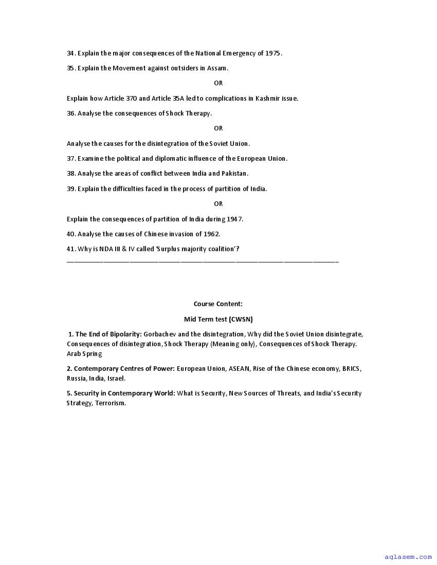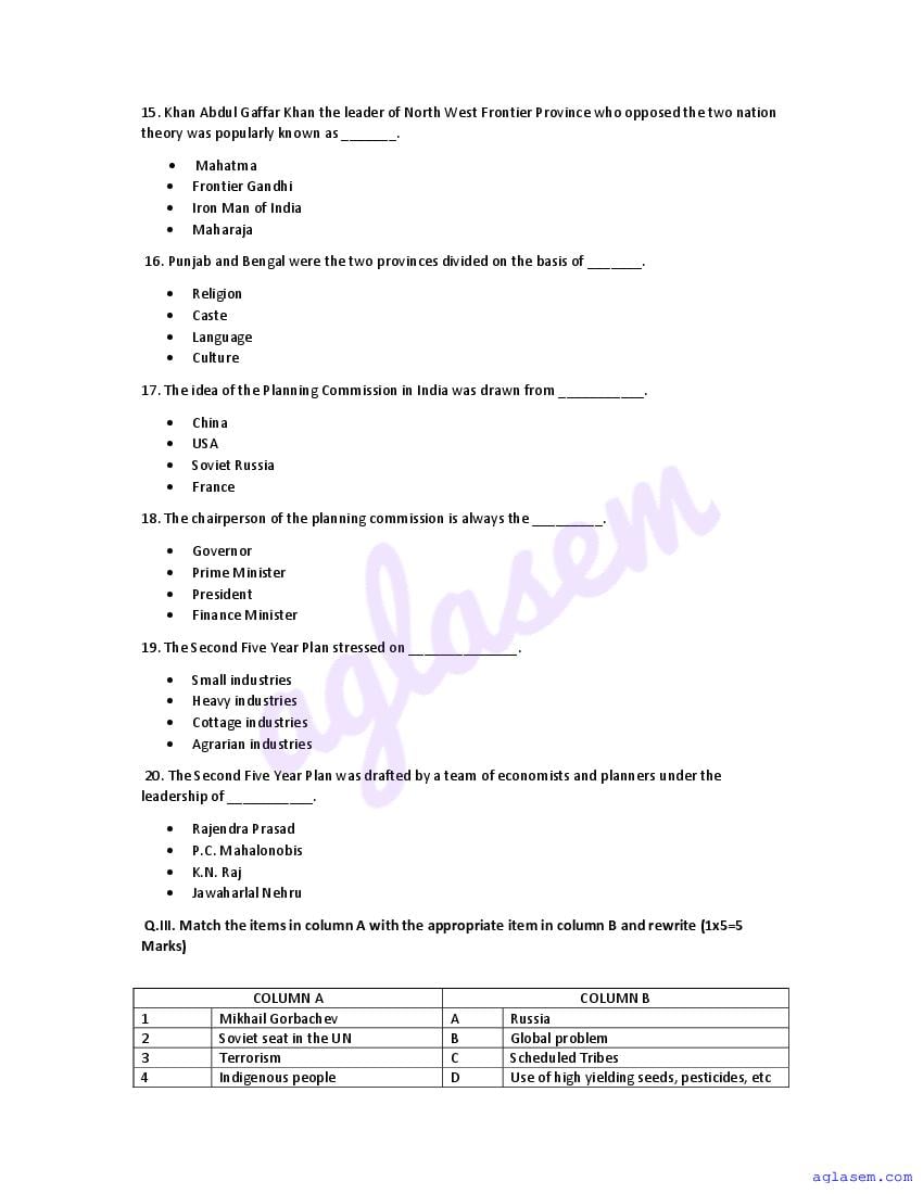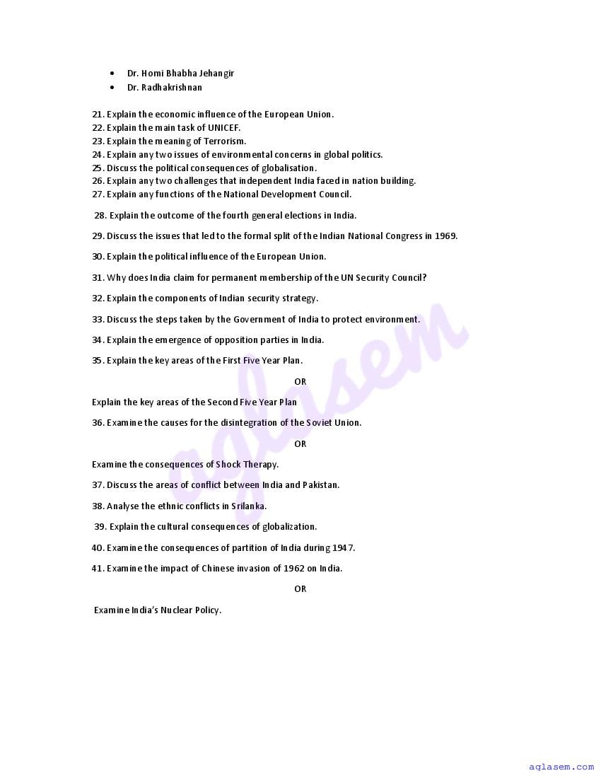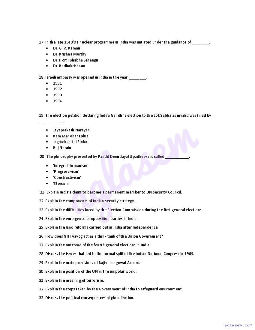 | Study Material Here | Goa Board Sample Question Paper of Class 12 Political Science |