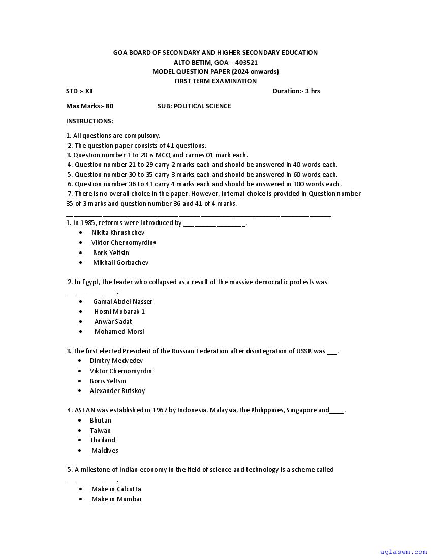 If you have any queries on Goa Board HSSC Political Science Model Question Paper 2026, then please ask in comments below.
