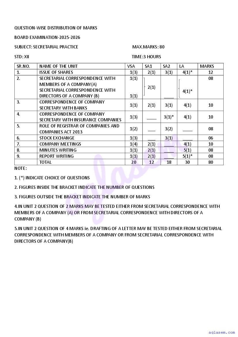 Goa Board HSSC Secretarial Practice Model Question Paper 2026 is published by GBSHSE. You can download the Goa Class 12 Secretarial Practice Sample Paper PDF from here on aglasem. This Goa Board HSSC Model Paper contains specimen questions from the latest Secretarial Practice syllabus in a pattern similar to what you will get in actual HSSC exams. Therefore by solving the Secretarial Practice sample paper, you can boost your exam preparation and target 100% marks.