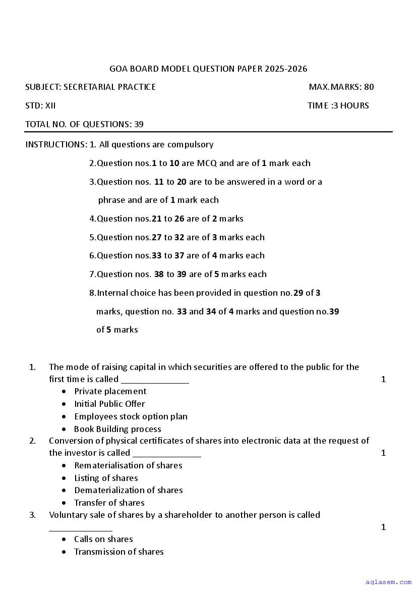 If you have any queries on Goa Board HSSC Secretarial Practice Model Question Paper 2026, then please ask in comments below.