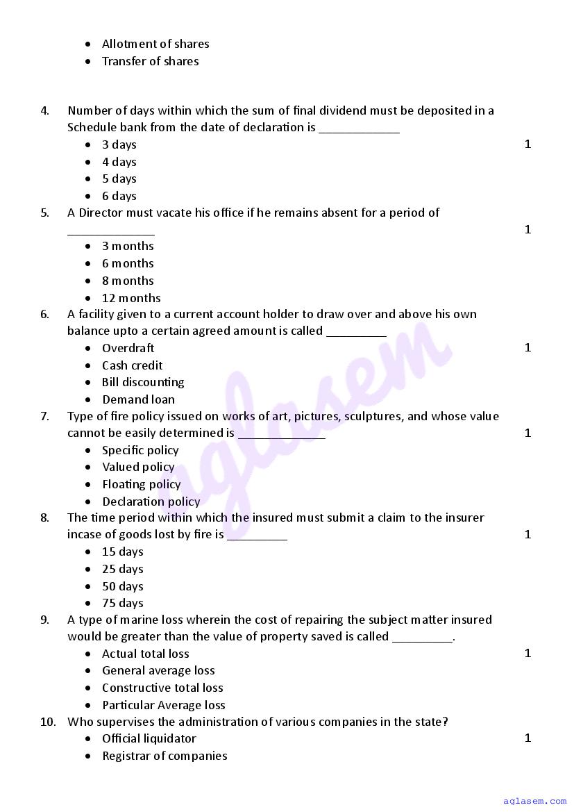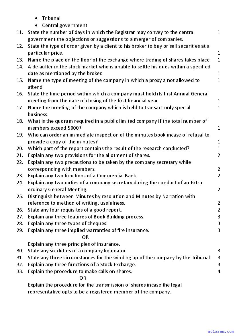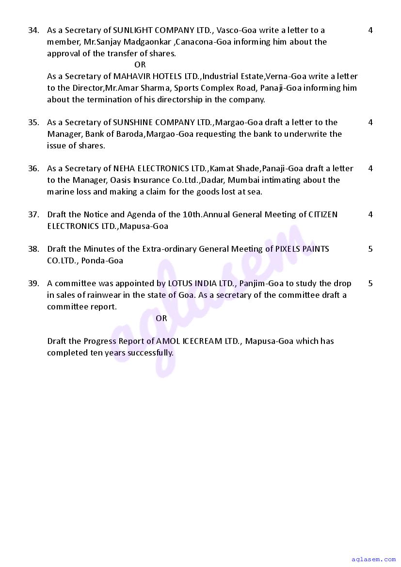 | Study Material Here | Goa Board Sample Question Paper of Class 12 Secretarial Practice |