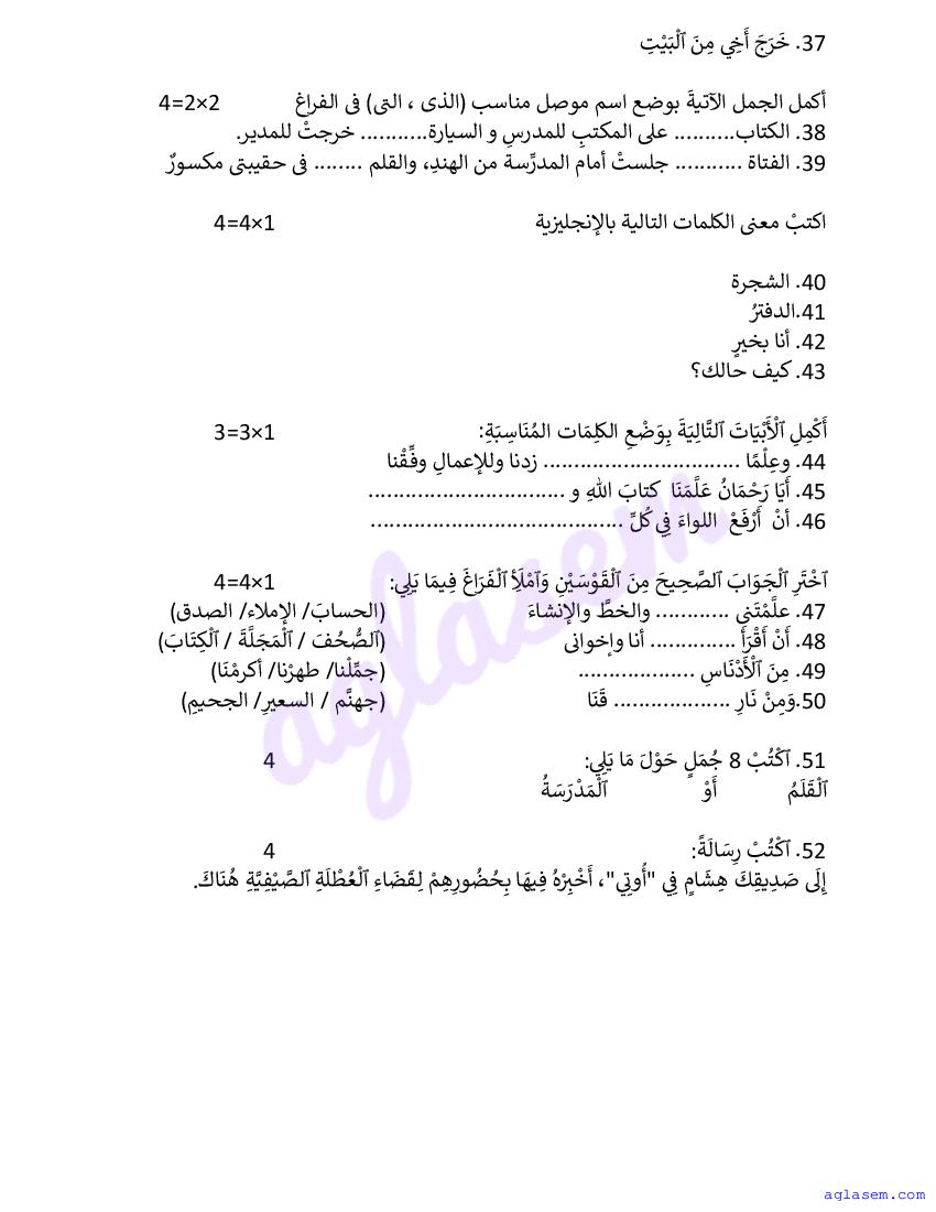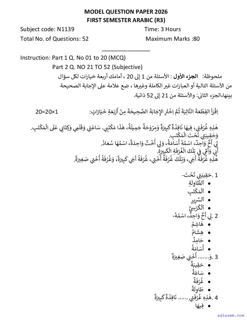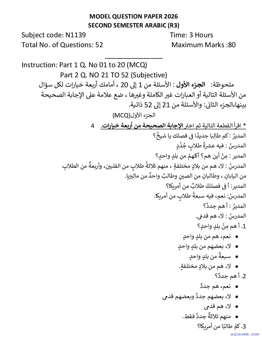 | Study Material Here | Goa Board Sample Question Paper of Class 9 Arabic |