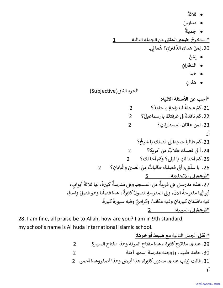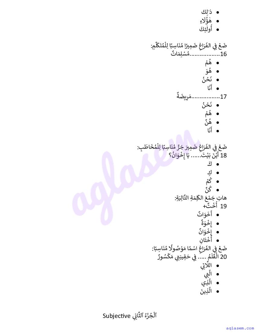 | Subject | Arabic |