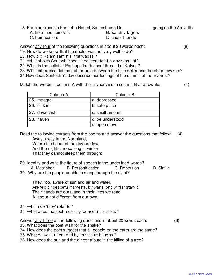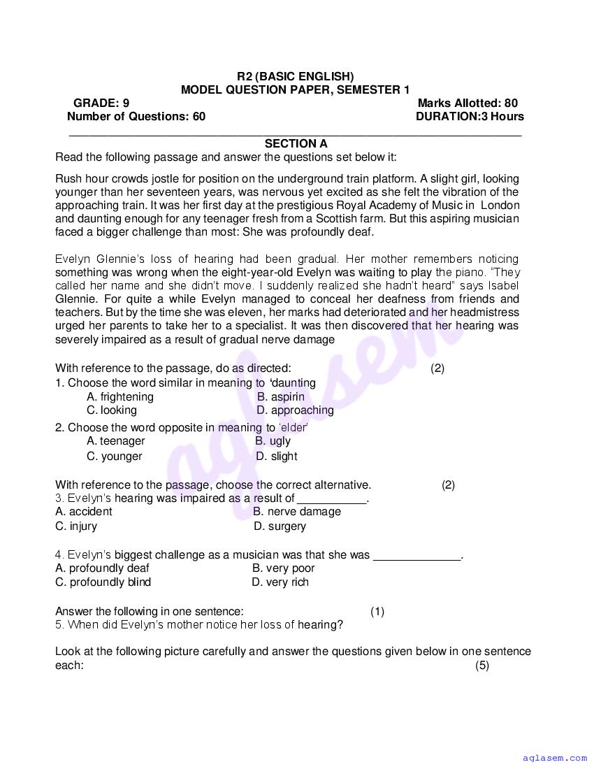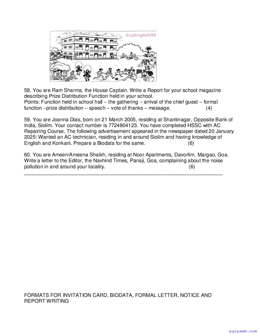 | Study Material Here | Goa Board Sample Question Paper of Class 9 English Basic |