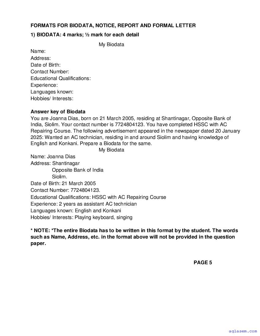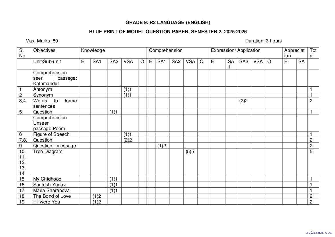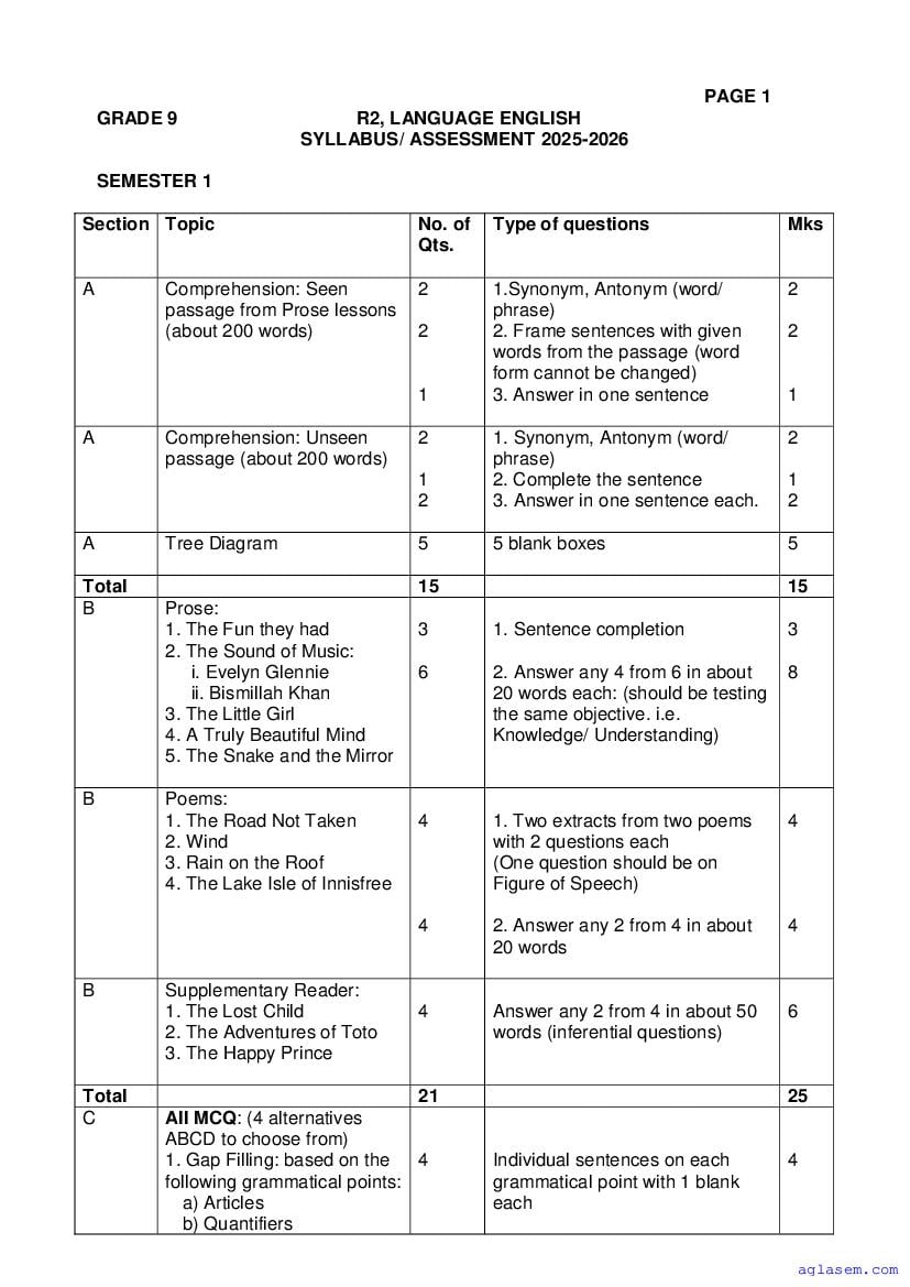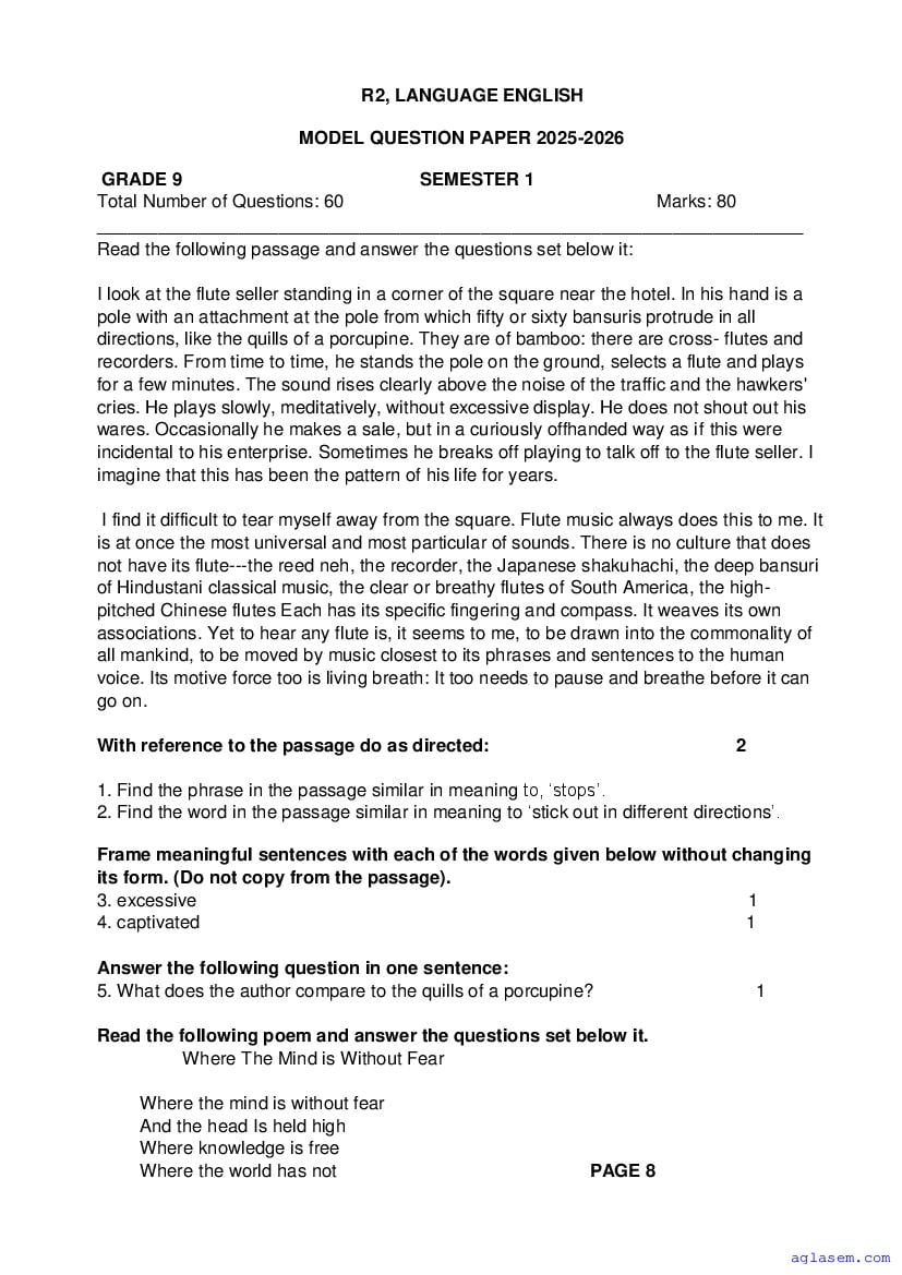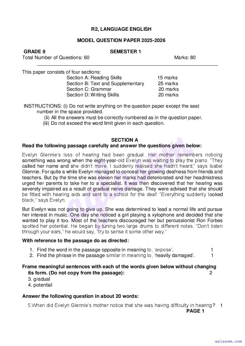 Goa Board Class 9 English Model Question Paper 2026 is published by GBSHSE. You can download the Goa Class 9 English Sample Paper PDF from here on aglasem. This Goa Board Class 9 Model Paper contains specimen questions from the latest English syllabus in a pattern similar to what you will get in actual Class 9 exams. Therefore by solving the English sample paper, you can boost your exam preparation and target 100% marks.