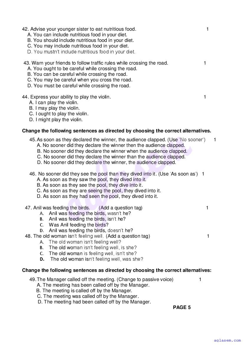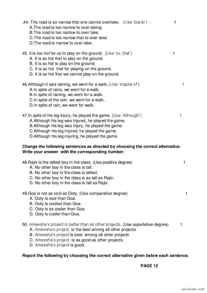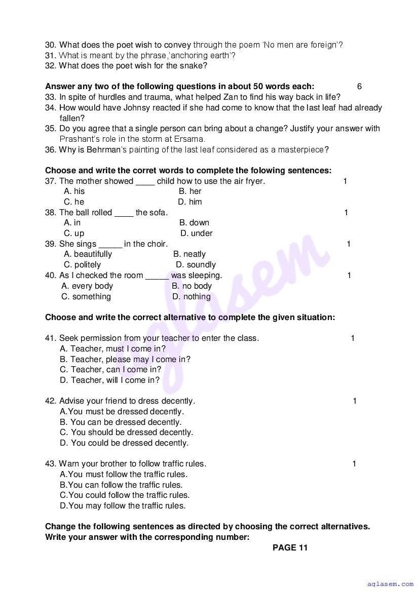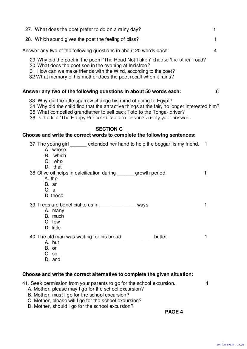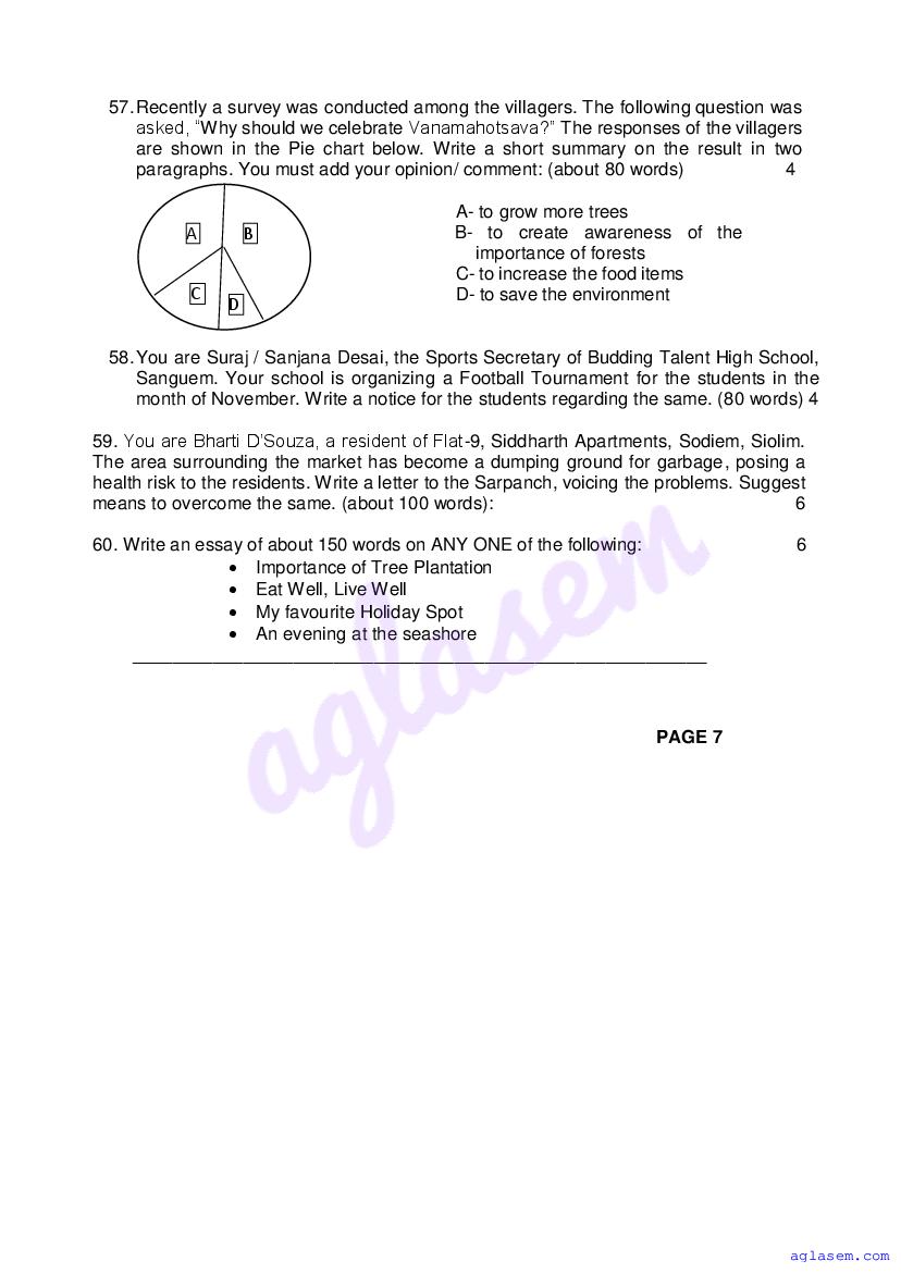 | Study Material Here | Goa Board Sample Question Paper of Class 9 English |