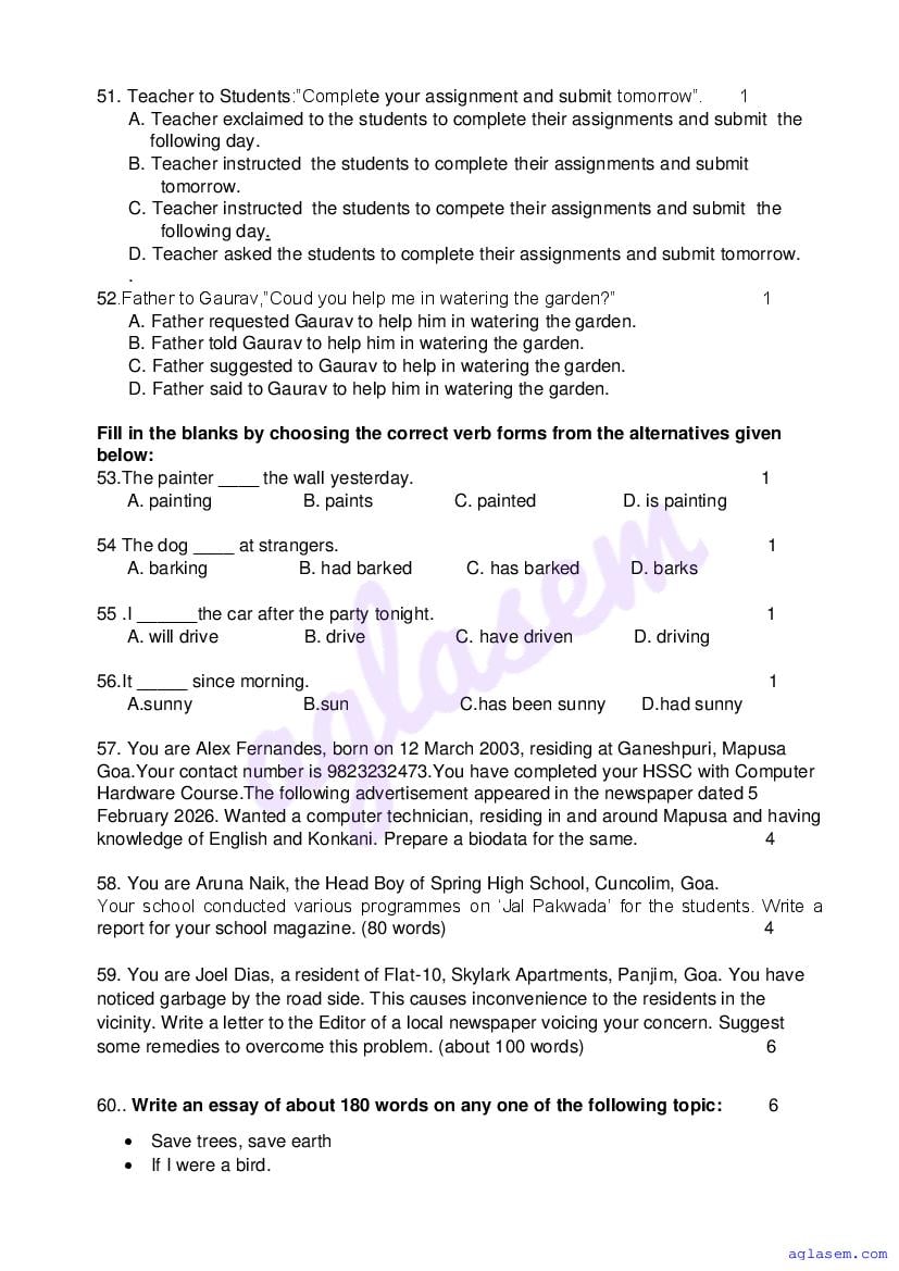 If you have any queries on Goa Board Class 9 English Model Question Paper 2026, then please ask in comments below.