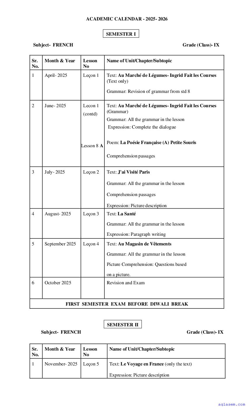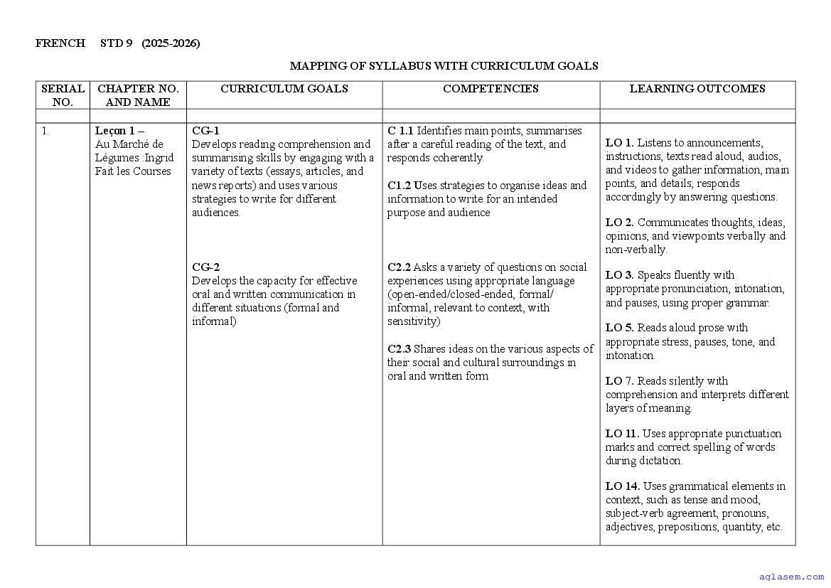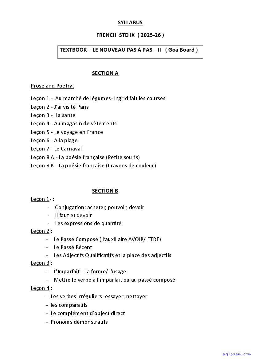- Goa Board Class 9th French Syllabus – You should refer the Goa Class 9 Syllabus for French as prescribed by the Goa Board of Secondary and Higher Secondary Education.